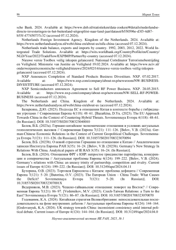 28. Белов, В.Б. (2023a). Германо-китайские экономические отношения в условиях актуальных геополитических вызовов // Современная Европа 7(121): 111-126. EDN: RZADWI
