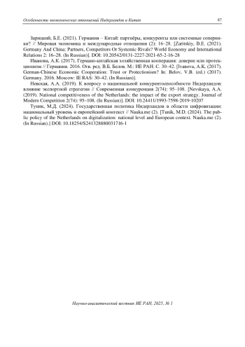 34. Зарицкий, Б.Е. (2021). Германия - Китай: партнёры, конкуренты или системные соперники? // Мировая экономика и международные отношения (2): 16-28. EDN: BDRRYG