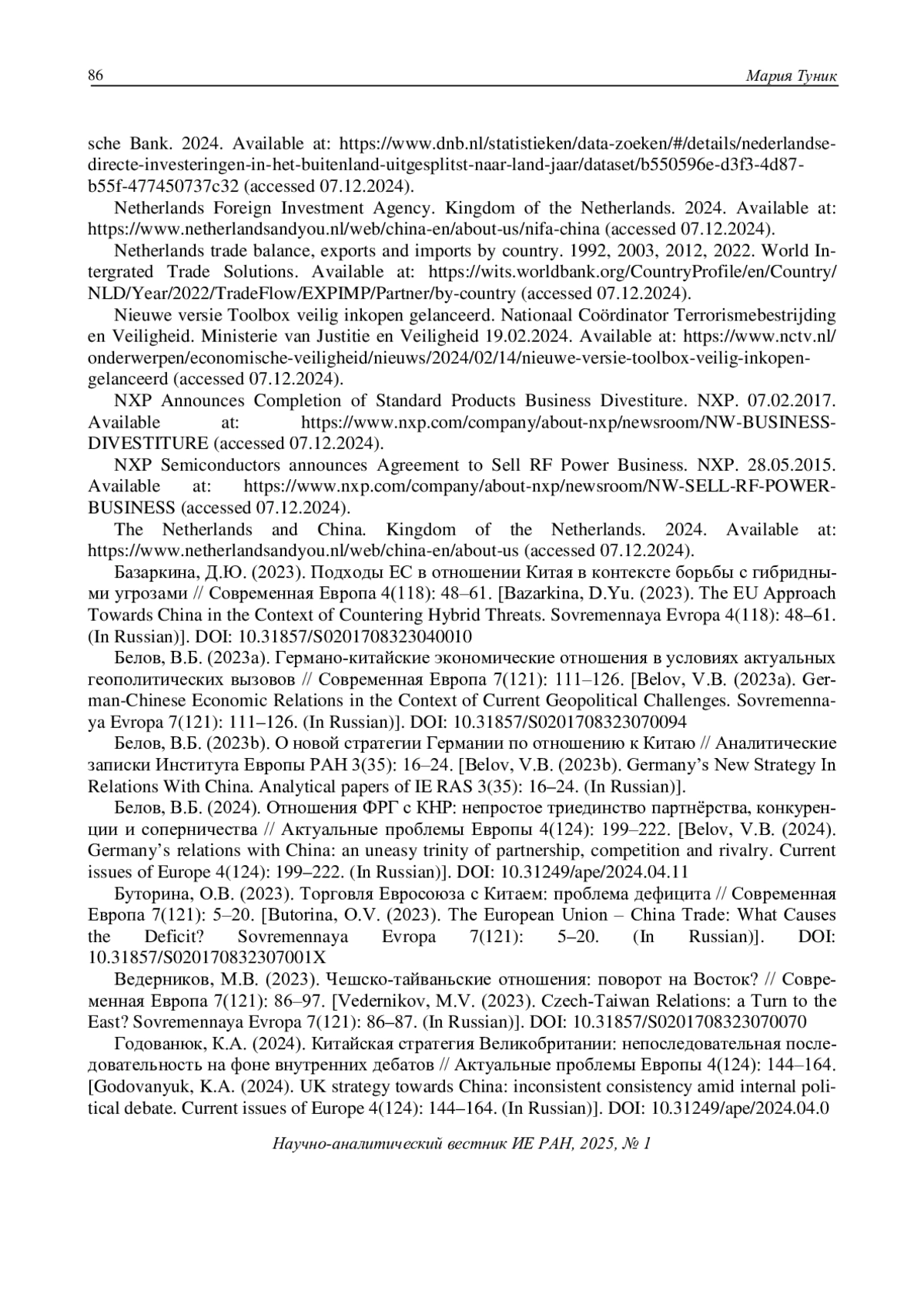 9. China’s Wingtech to acquire Dutch semiconductor firm Nexperia for $3.6 bln. Reuters. 25.10.2018. Available at: https://www.reuters.com/article/business/chinas-wingtech-to-acquire-dutch-semiconductor-firm-nexperia-for-36-bln-idUSL3N1X51ZN/(accessed 07.12.2024).