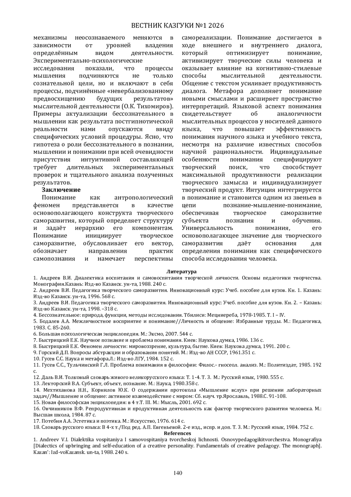 2. Андреев В.И. Педагогика творческого саморазвития. Инновационный курс: Учеб. пособие для вузов. Кн. 1. Казань: Изд-во Казанск. ун-та, 1996. 568 с.