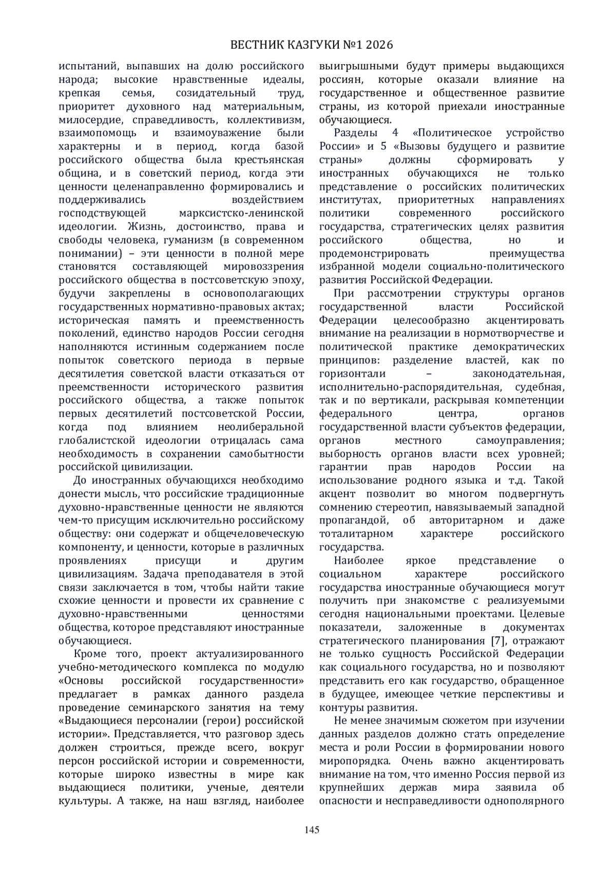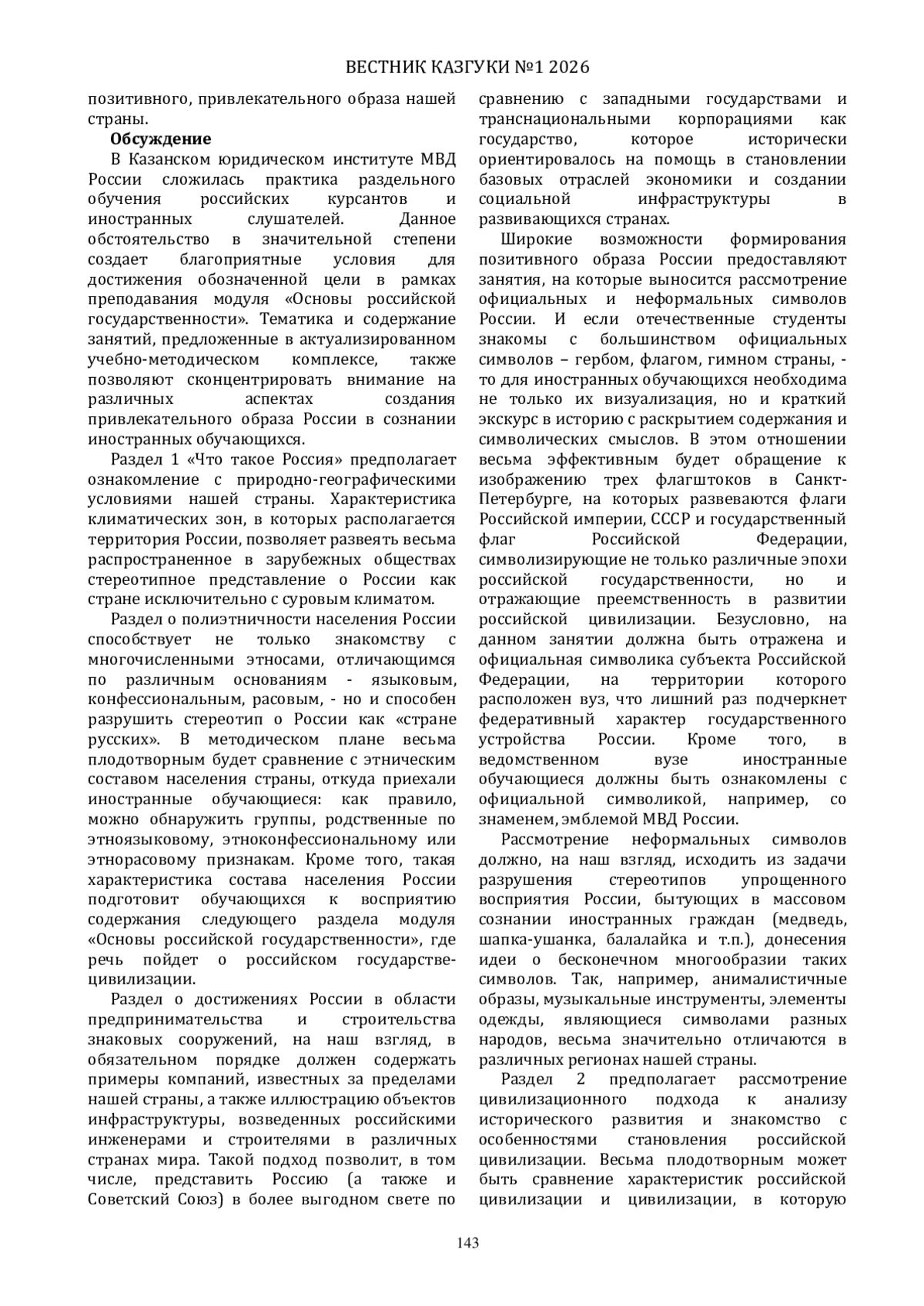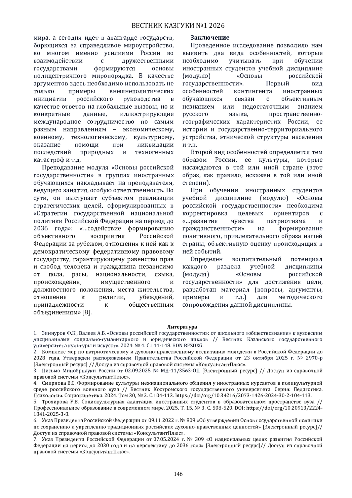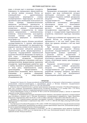 1. Зиннуров Ф.К., Валеев А.Б. “Основы российской государственности”: от школьного “обществознания” к вузовским дисциплинами социально-гуманитарного и юридического циклов // Вестник Казанского государственного университета культуры и искусств. 2024. № 4. С.144-148. EDN: BFZDXG