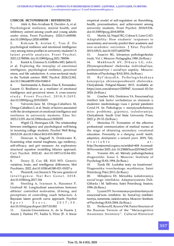 2. Kokcam B., Arslan C., Tras Z. Do psychological resilience and emotional intelligence vary among stress profiles in university students? A latent profile analysis. F ront Psychol. 2021;12:788506. DOI: 10.3389/fpsyg.2021.788506