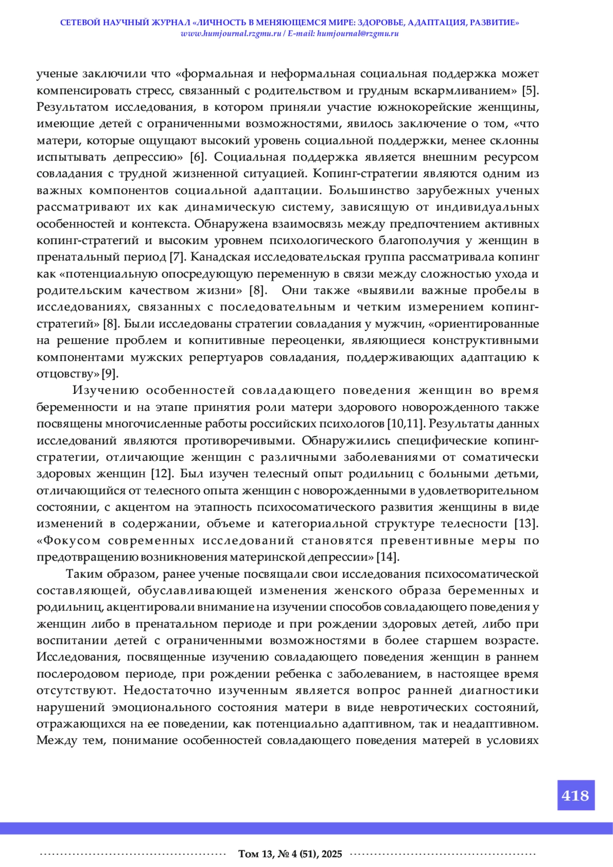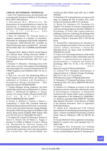 10. Podobina O.B. Coping behavior of women at the stage of accepting the role of mother: Diss. Cand. Psychol. Sci. Kostroma, 2005. P. 211. (In Russ).