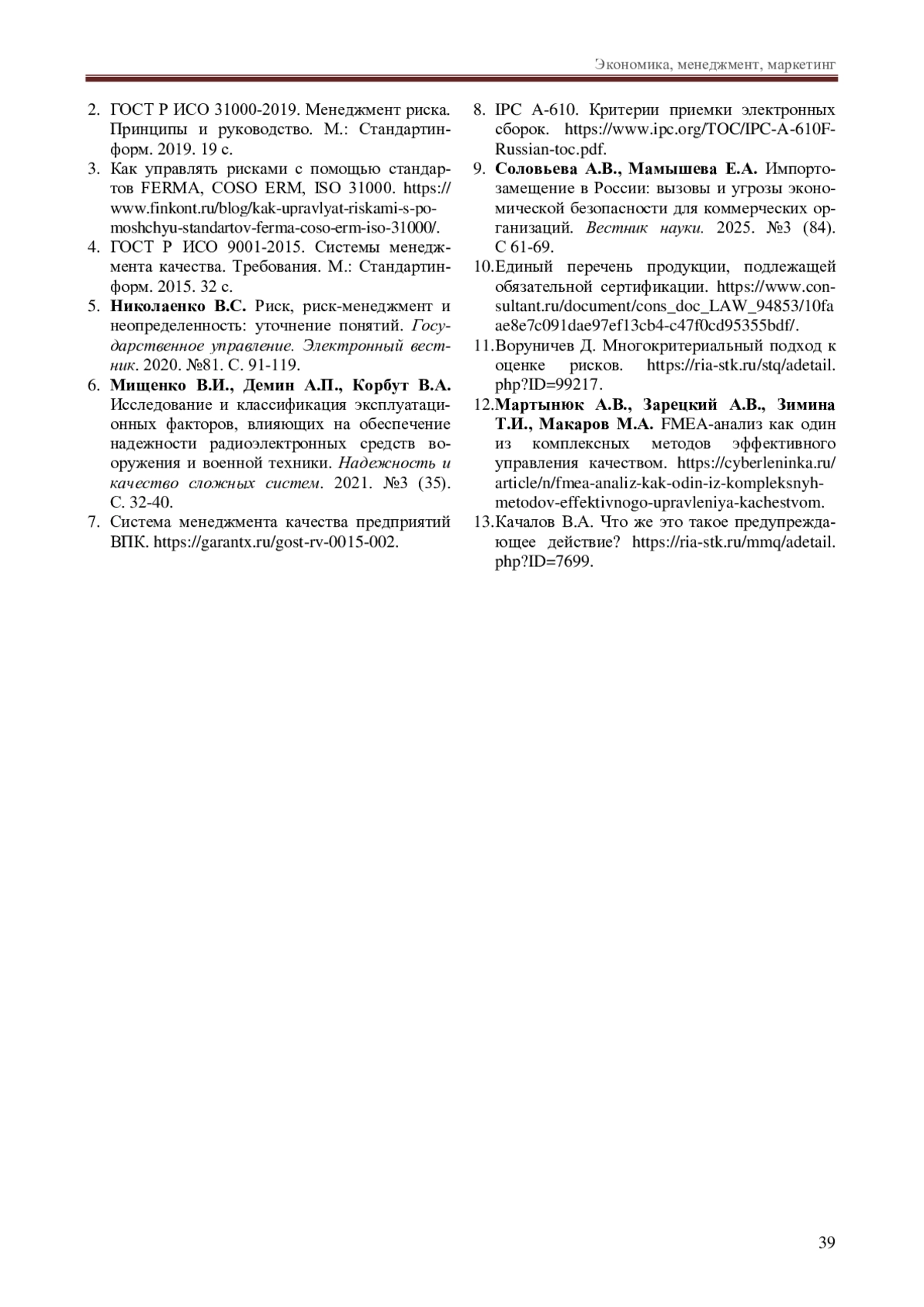 9. Соловьева А.В., Мамышева Е.А. Импортозамещение в России: вызовы и угрозы экономической безопасности для коммерческих организаций. Вестник науки. 2025. №3 (84). С 61-69.