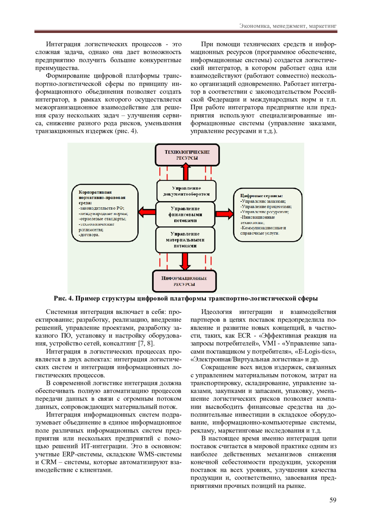 Системная интеграция включает в себя: проектирование; разработку, реализацию, внедрение решений, управление проектами, разработку заказного ПО, установку и настройку оборудования, устройство сетей, консалтинг [7, 8]. Интеграция в логистических процессах проявляется в двух аспектах: интеграция логистических систем и интеграция информационных логистических процессов.