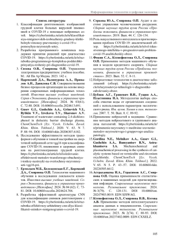 23. Ксенофонтова О.Л., Смирнова Н.В., Котова А.В. Применение методов интеллектуального анализа данных в эпидемиологии. Современные наукоемкие технологии. Региональное приложение. 2023. № 2(74). С. 88-93. EDN: CXXELZ