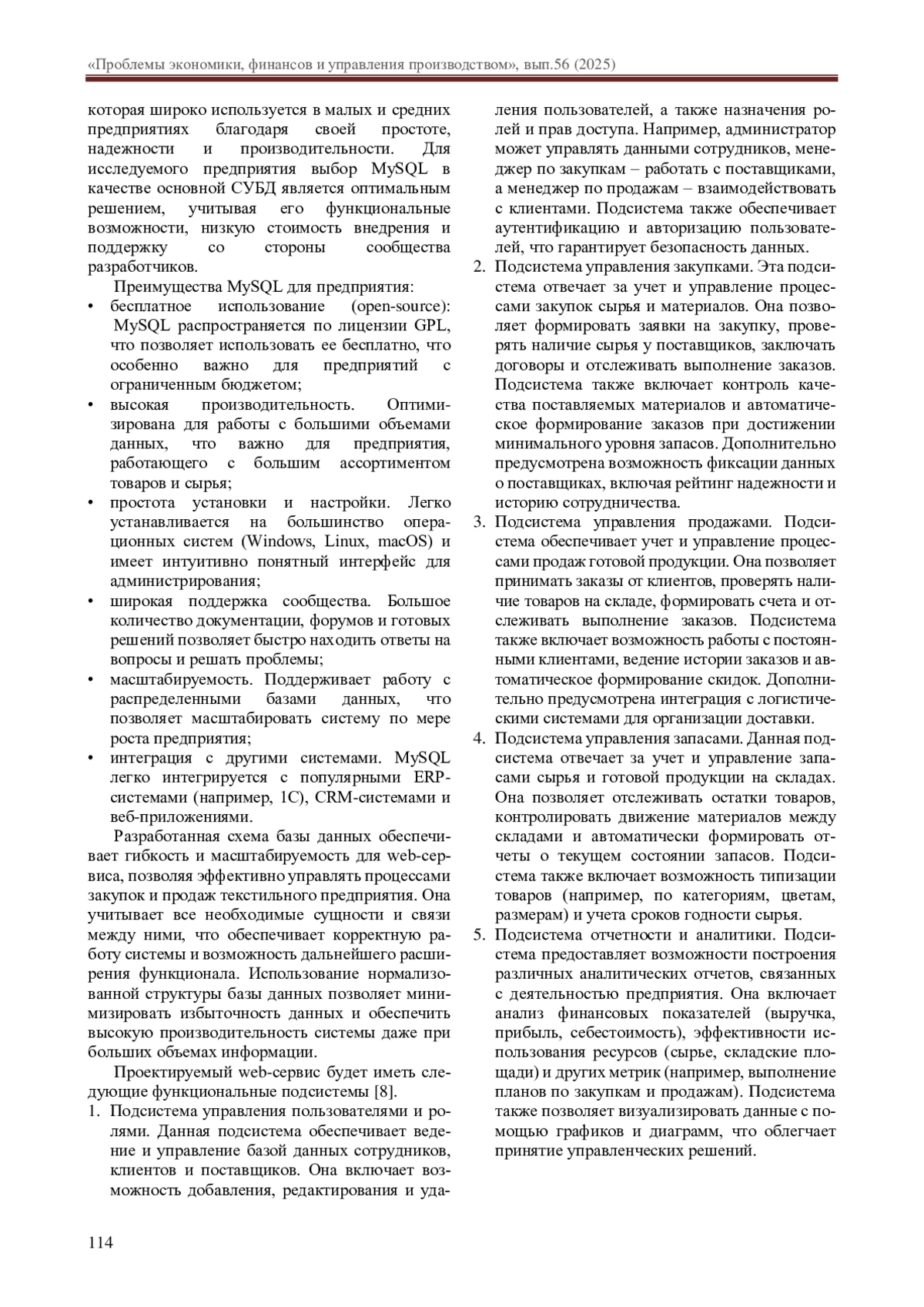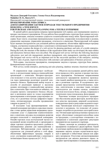 В данной работе рассмотрены вопросы проектирования web-сервиса для планирования закупок и продаж текстильного предприятия. В ходе работы была разработаны структура базы данных исследуемой организации, описаны основные сущности и взаимодействия между ними. Проектируемый web-сервис будет иметь следующие функциональные подсистемы: управления пользователями и ролями, управления закупками, управления продажами, отчетности и аналитики. Проектируемый web-сервис будет важным инструментом для успешной работы предприятия, обеспечивая эффективную продажу товаров, улучшенное взаимодействие с клиентами и оптимизацию бизнес-процессов.