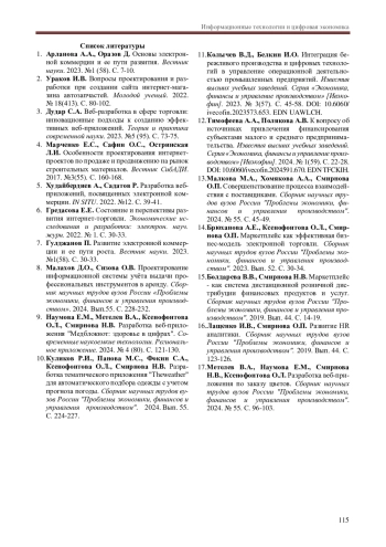 5. Худайбердиев А., Садатов Р. Разработка веб-приложений, посвященных электронной коммерции. IN SITU. 2022. №12. С. 39-41.
