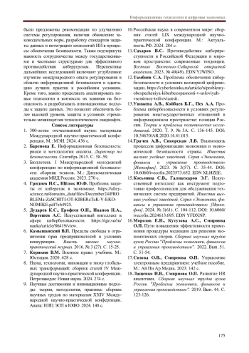 14. Грачев А.В., Сикорская Л.В. Взаимосвязь процессов цифровизации экономики и экономической безопасности страны. Известия высших учебных заведений. Серия “Экономика, финансы и управление производством” [Ивэкофин]. 2023. № 3(57). С. 35-44. DOI: 10.6060/ivecofin.2023573.652 EDN: XLHZEE
