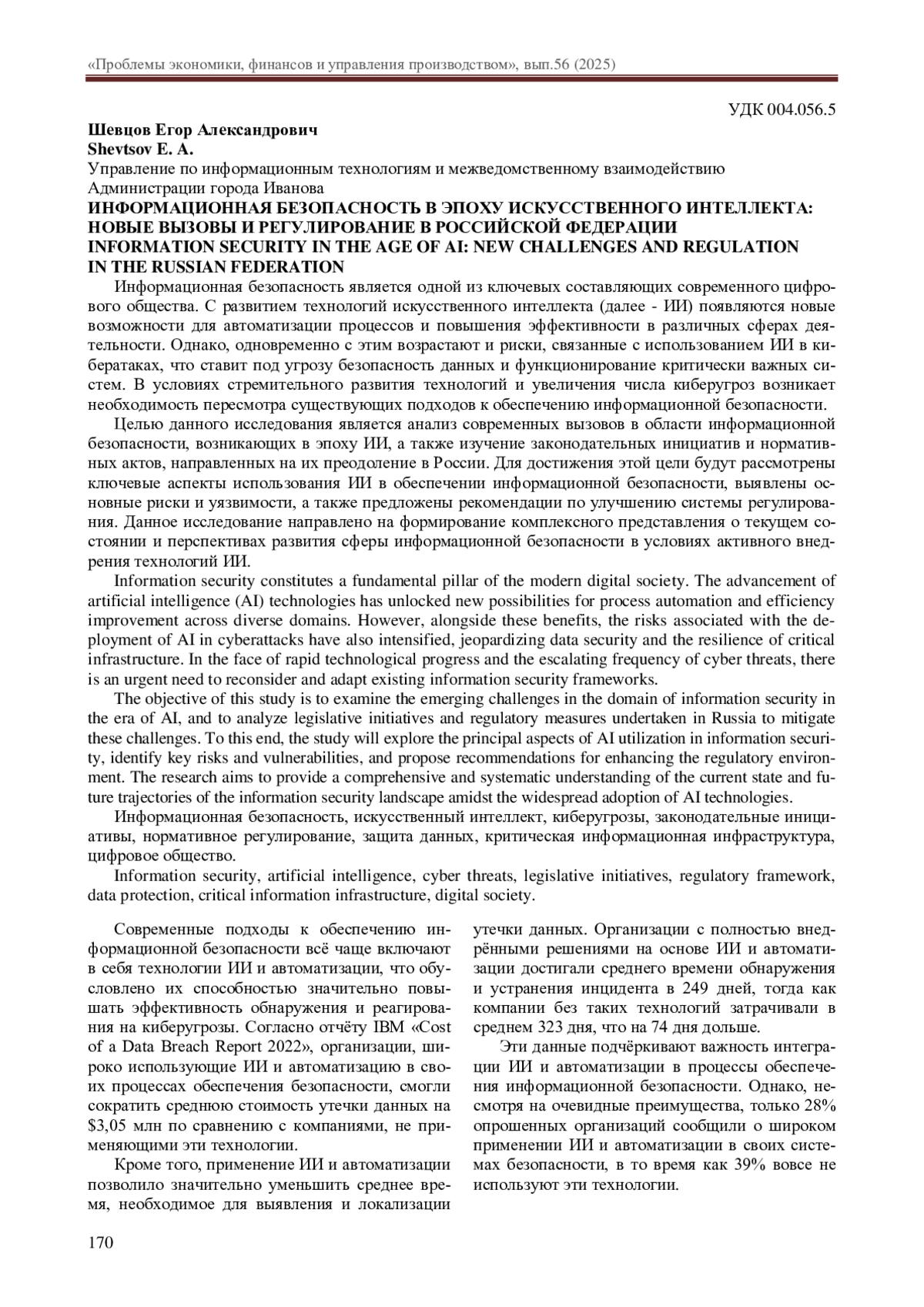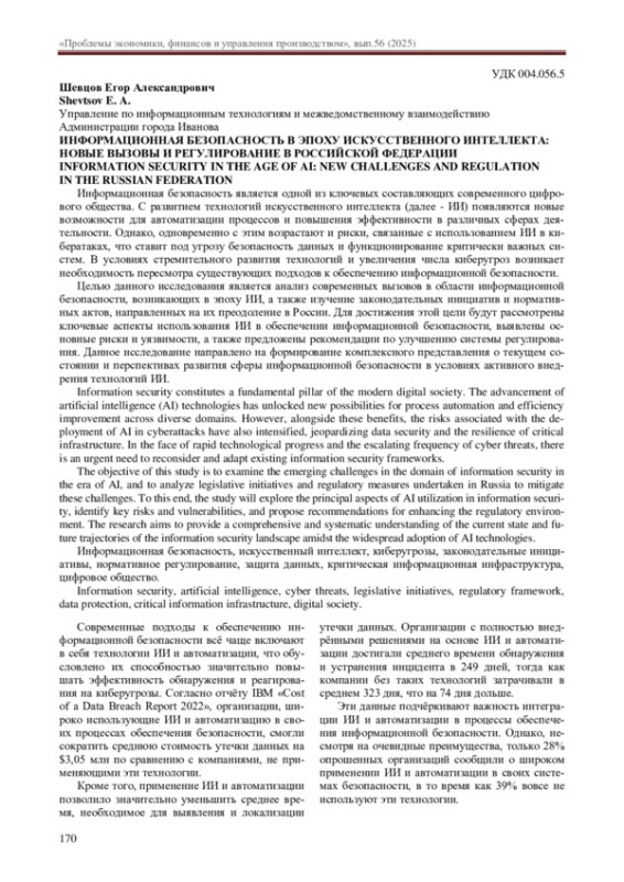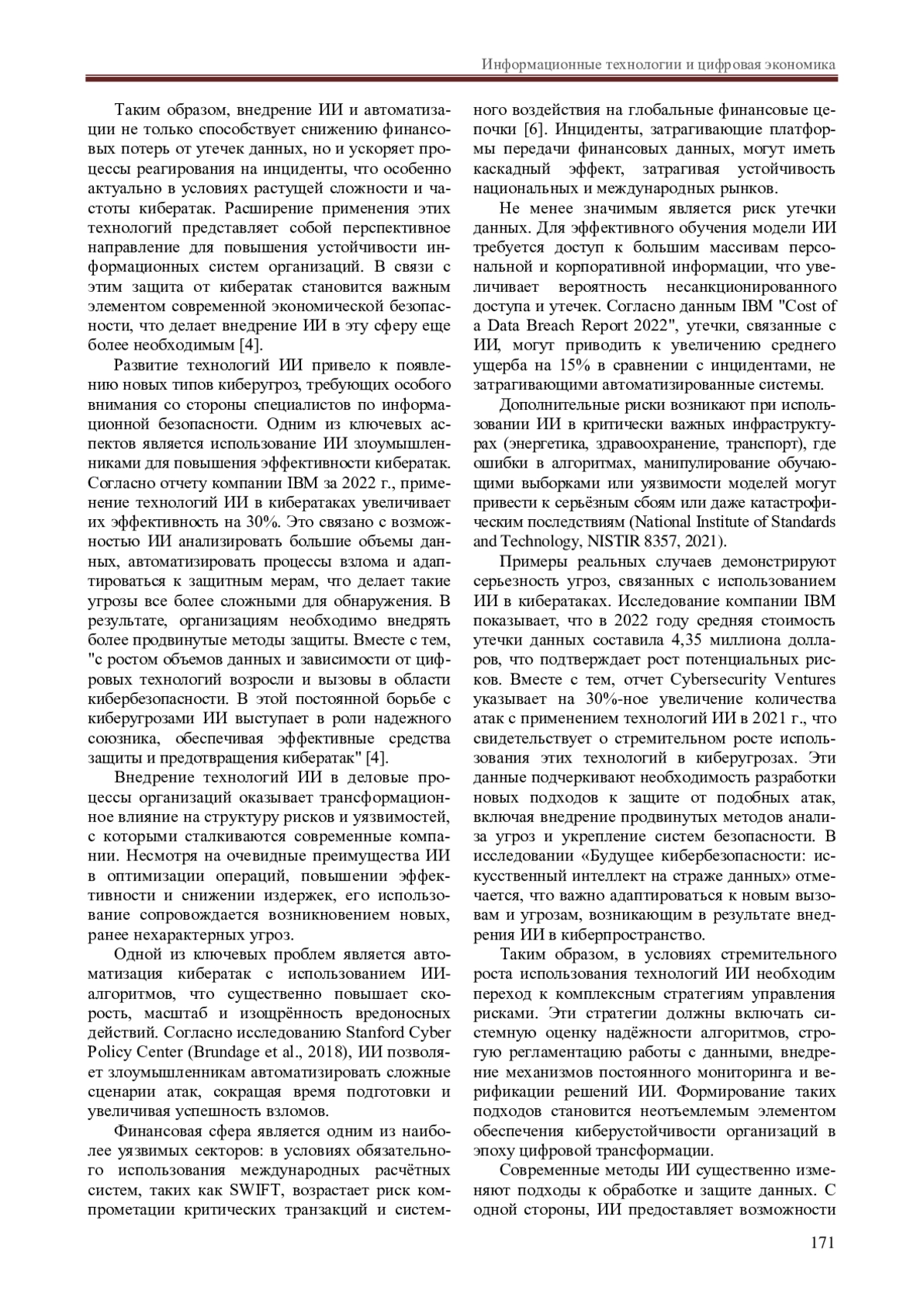 5. Дударев К.С., Ерофеев О.Н., Иванов Н.А., Вертешев А.С. Искусственный интеллект в сфере кибербезопасности. https://qje.su/ru/nauka/article/86419/view.
