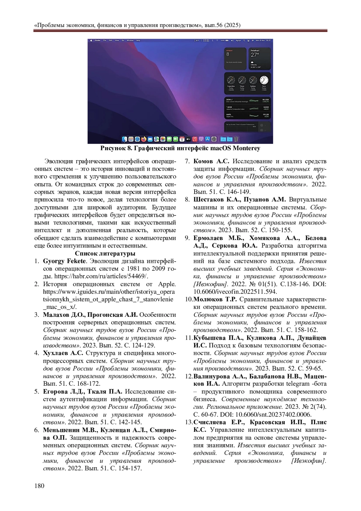 6. Меньшенин М.В., Куленцан А.Л., Смирнова О.П. Защищенность и надежность современных операционных систем. Сборник научных трудов вузов России “Проблемы экономики, финансов и управления производством”. 2022. Вып. 51. С. 154-157. EDN: AAIZAN