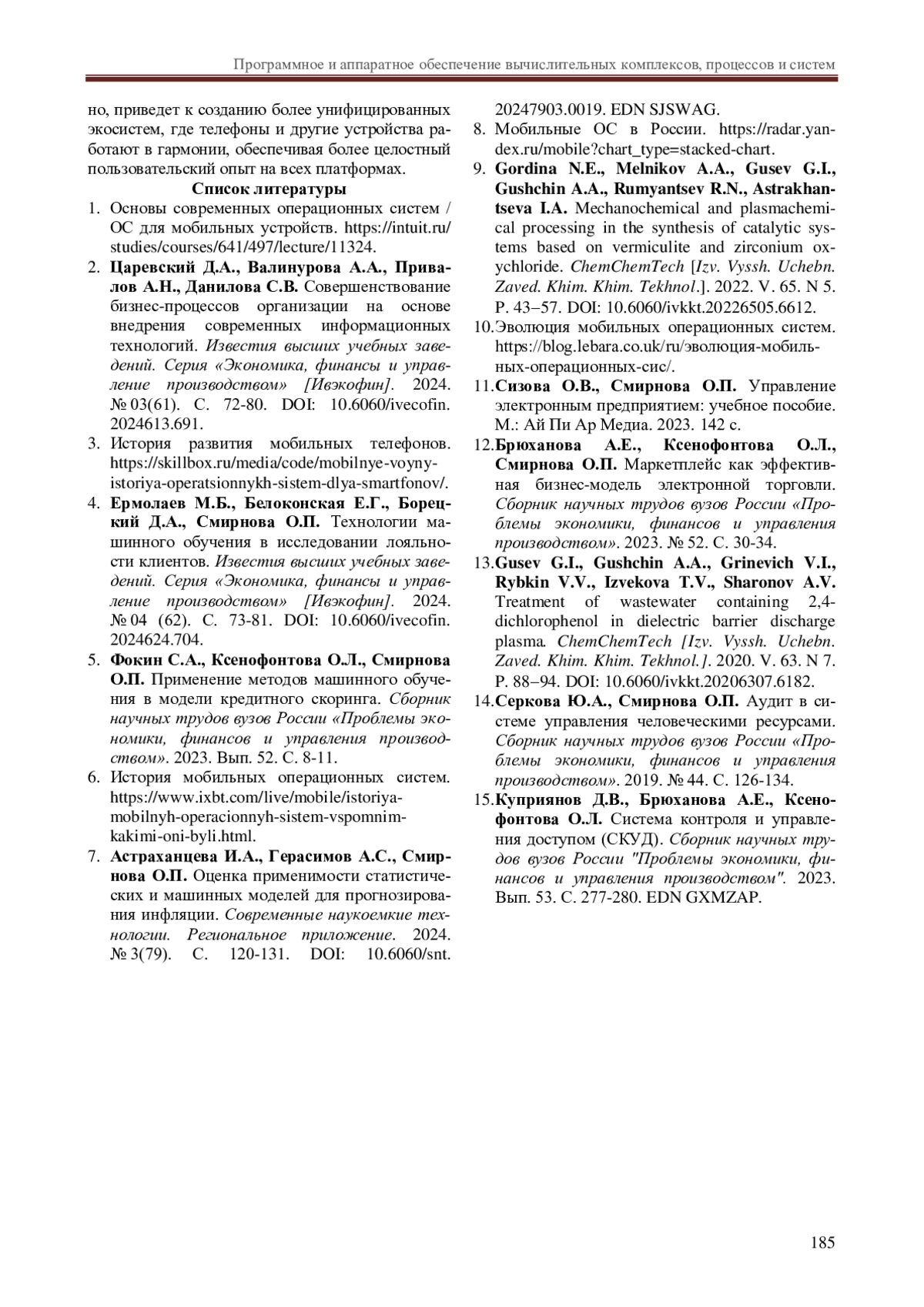 4. Ермолаев М.Б., Белоконская Е.Г., Борецкий Д.А., Смирнова О.П. Технологии машинного обучения в исследовании лояльности клиентов. Известия высших учебных заведений. Серия “Экономика, финансы и управление производством” [Ивэкофин]. 2024. № 04 (62). С. 73-81. DOI: 10.6060/ivecofin.2024624.704 EDN: NOHACV