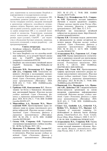 8. Мамедова Л.Э., Иванова Л.Н., Алтаев Е.С. Основные аспекты технологии искусственного интеллекта. Известия высших учебных заведений. Серия “Экономика, финансы и управление производством” [Ивэкофин]. 2023. № 03 (57). С. 78-88. DOI: 10.6060/ivecofin.2023573.656 EDN: QCPKWV