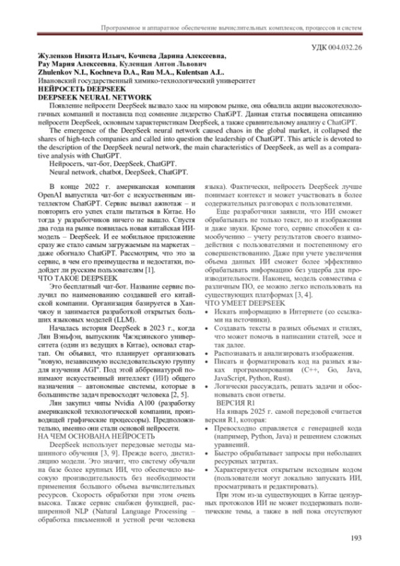 Появление нейросети DeepSeek вызвало хаос на мировом рынке, она обвалила акции высокотехнологичных компаний и поставила под сомнение лидерство ChatGPT. Данная статья посвящена описанию нейросети DeepSeek, основным характеристикам DeepSeek, а также сравнительному анализу с ChatGPT.