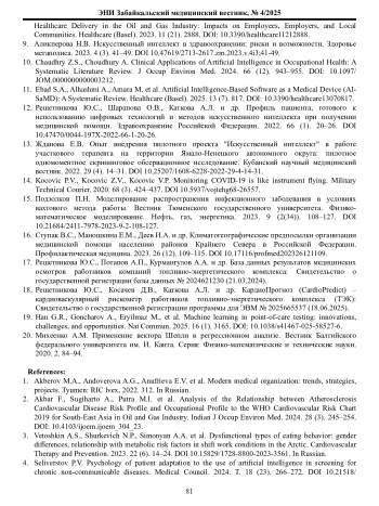 10. Chaudhry Z.S., Choudhury A. Clinical Applications of Artificial Intelligence in Occupational Health: A Systematic Literature Review. J Occup Environ Med. 2024. 66 (12). 943-955. 10.1097/ JOM.0000000000003212. DOI: 10.1097/JOM.0000000000003212