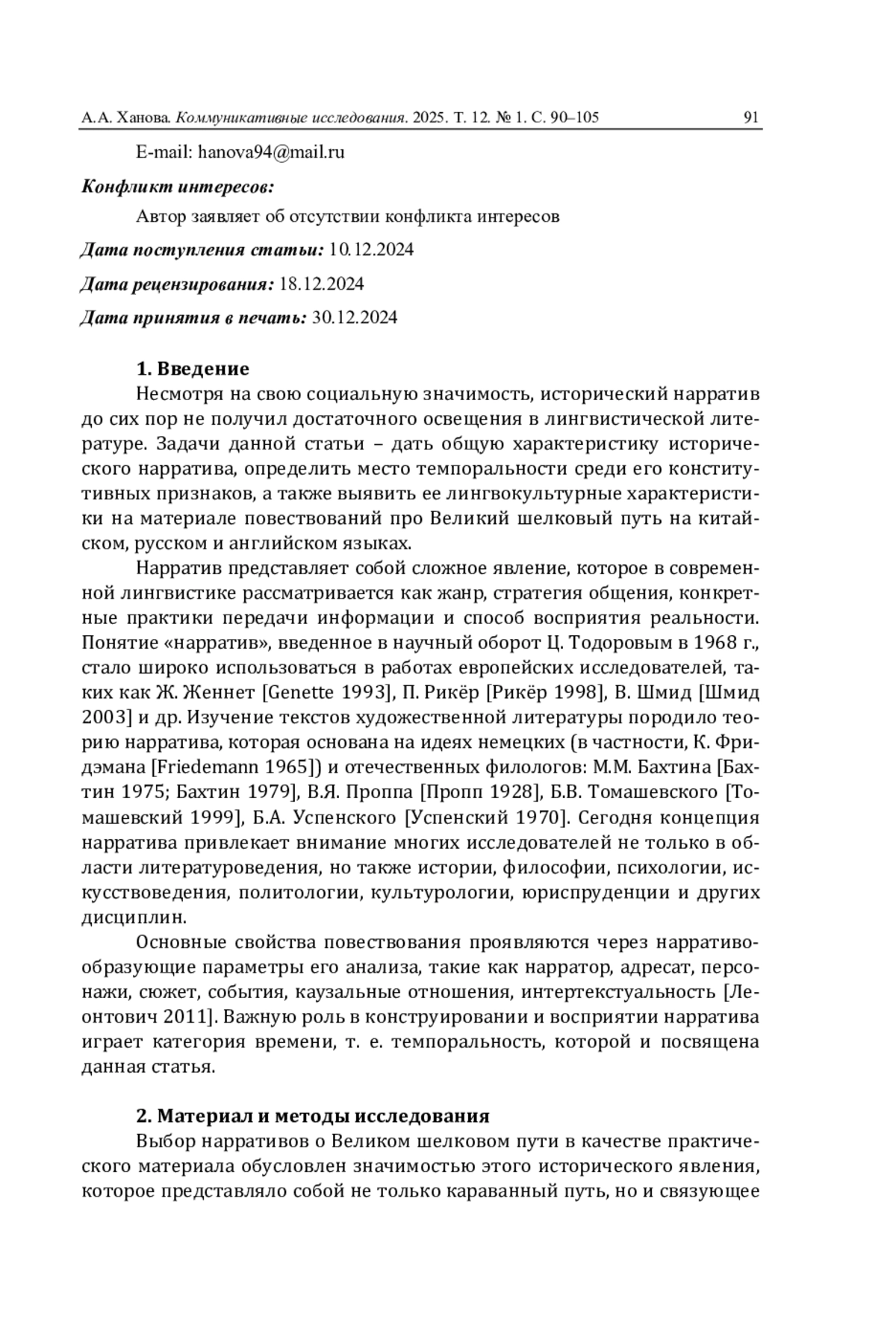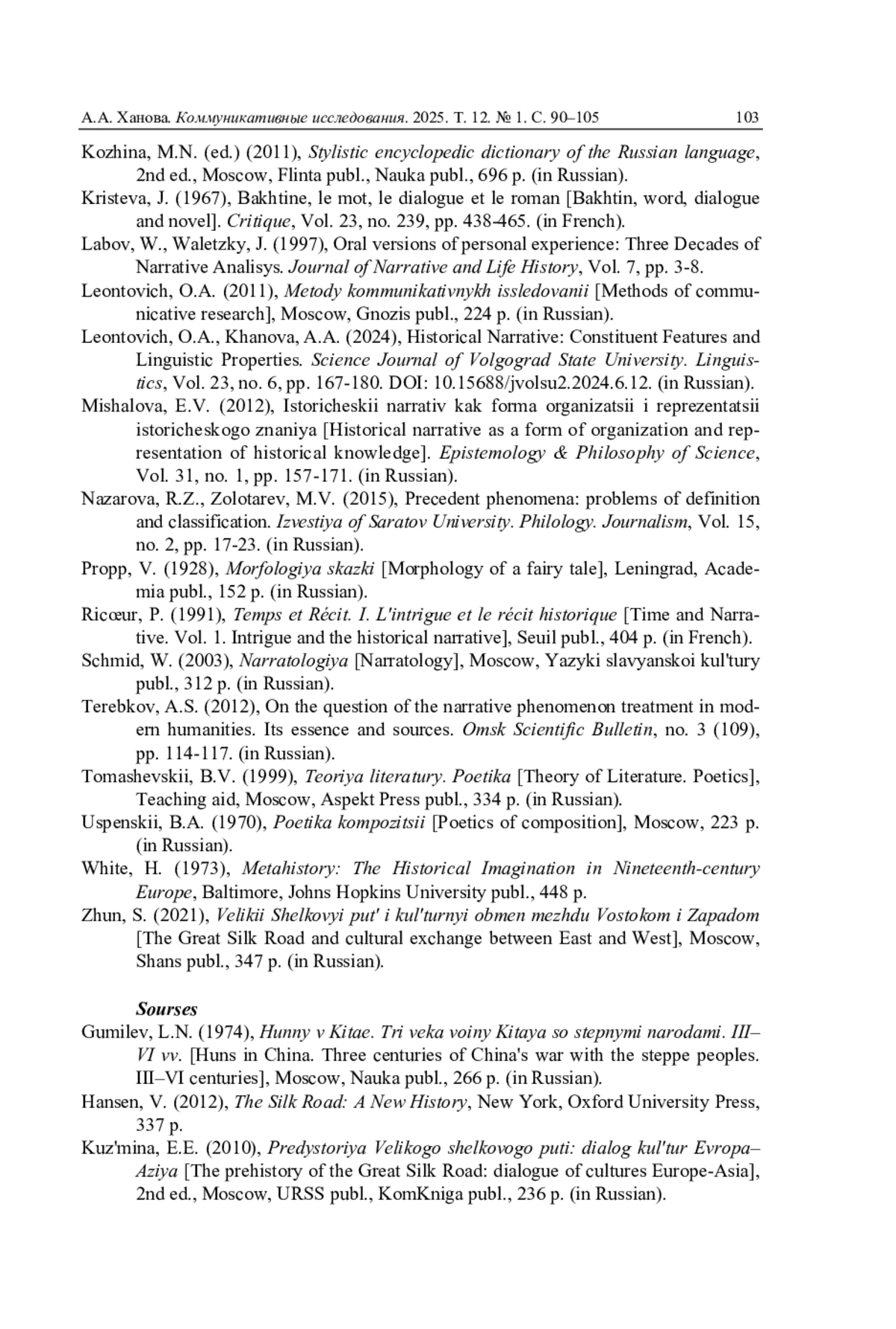13. Леонтович О.А., Ханова А.А. Исторический нарратив: конститутивные признаки и языковые характеристики // Вестник Волгоградского государственного университета. Серия 2, Языкознание. 2024. Т. 23. № 6. С. 167-180. DOI: 10.15688/jvolsu2.2024.6.12 EDN: PUIOSO