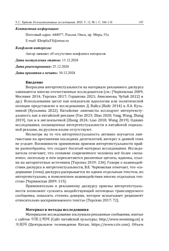 15. Wang L. Kuàguó guǎnggào yǔ piān zhōng de hù wén xìng yánjiū [Исследование интертекстуальности в межнациональном рекламном дискурсе] // Wàiyǔ diànhuà jiàoxué [Аудиовизуальное обучение иностранному языку]. 2019. № 6. С. 113-120.