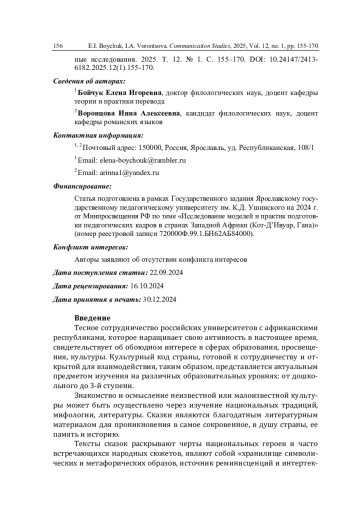 22. Lebrun M. Pour une exploration du conte africain en classe // Québec français. 1994. No. 92. P. 43-45.