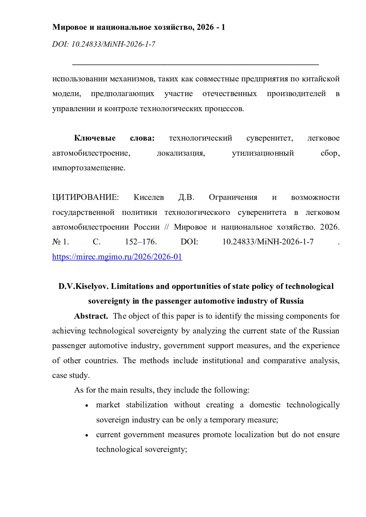 3. Киселев, Д. В. Последствия геополитического кризиса 2022 года для российского рынка легковых автомобилей / Д. В. Киселев // Экономика строительства. - 2025. - № 11. - С. 279-283.
