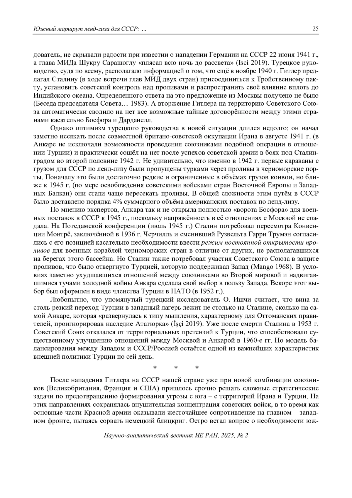 3. Isci, O. (2020). Turkey and the Soviet Union During World War II. Diplomacy, Discord and International Relations. Bloomsbury Publishing. Available at: https://tr.annas-archive.org/md5/3e498b114b3e2c3d0d59b223af177a23 (accessed 12.05.2025).