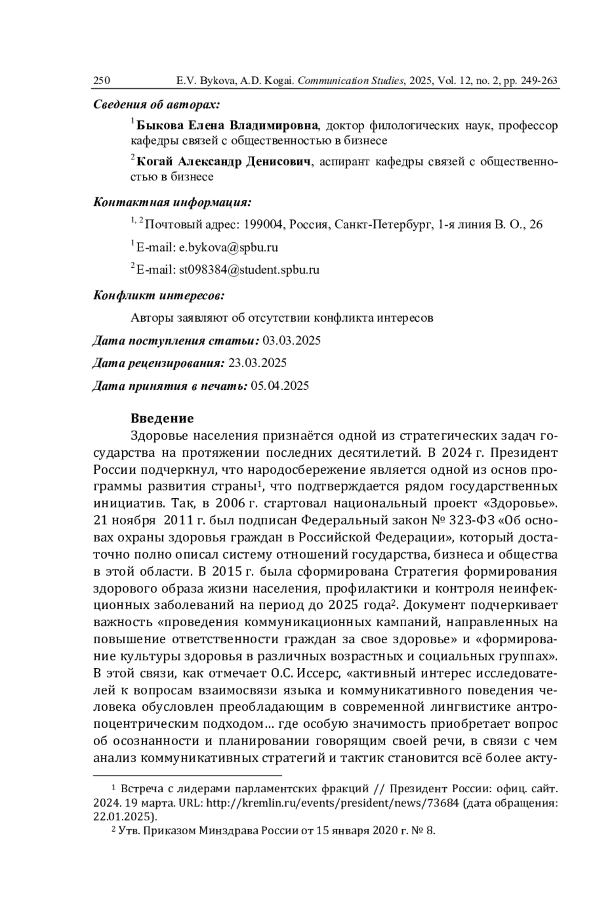 4. Вартанова Е.Л. Тема здоровья, его сохранения и поддержания - основа контент-стратегий современных российских СМИ // МедиаТренды. 2014. № 5 (47). С. 1.