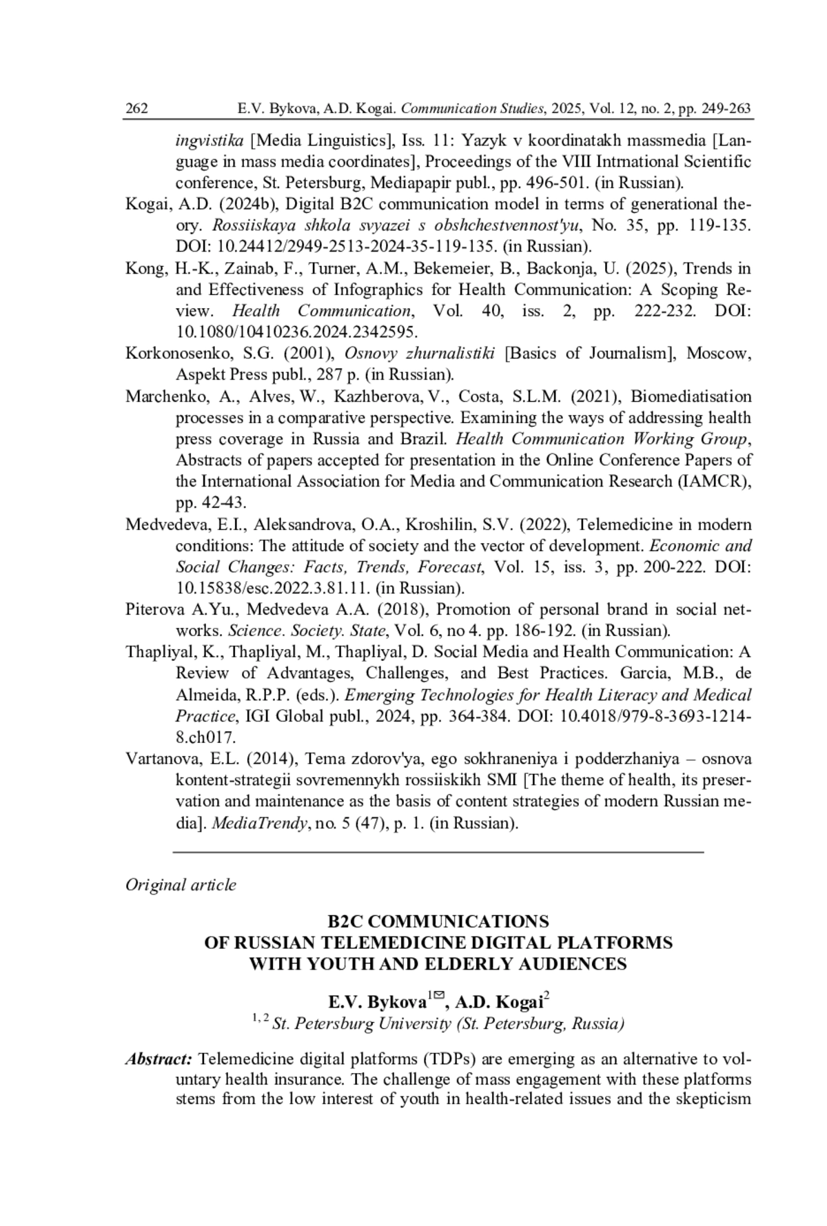 9. Когай А.Д. Контент-маркетинг в B2C-коммуникациях с цифровым и аналоговым метапоколениями (на примере текстов OTA-платформ в соцсетях) // Медиалингвистика. СПб.: Медиапапир, 2024а. Вып. 11: Язык в координатах массмедиа: материалы VIII Междунар. науч. конф. С. 496-501.