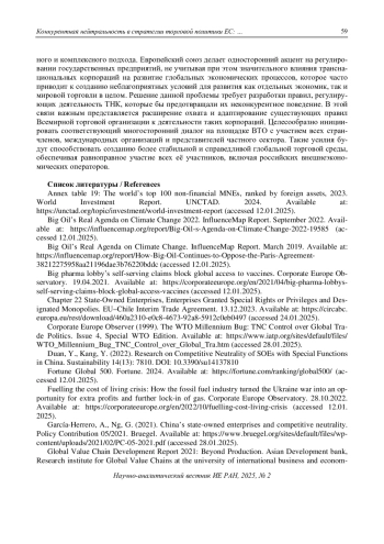 10. García-Herrero, A., Ng, G. (2021). China’s state-owned enterprises and competitive neutrality. Policy Contribution 05/2021. Bruegel. Available at: https://www.bruegel.org/sites/default/files/wp-content/uploads/2021/02/PC-05-2021.pdf (accessed 28.01.2025).