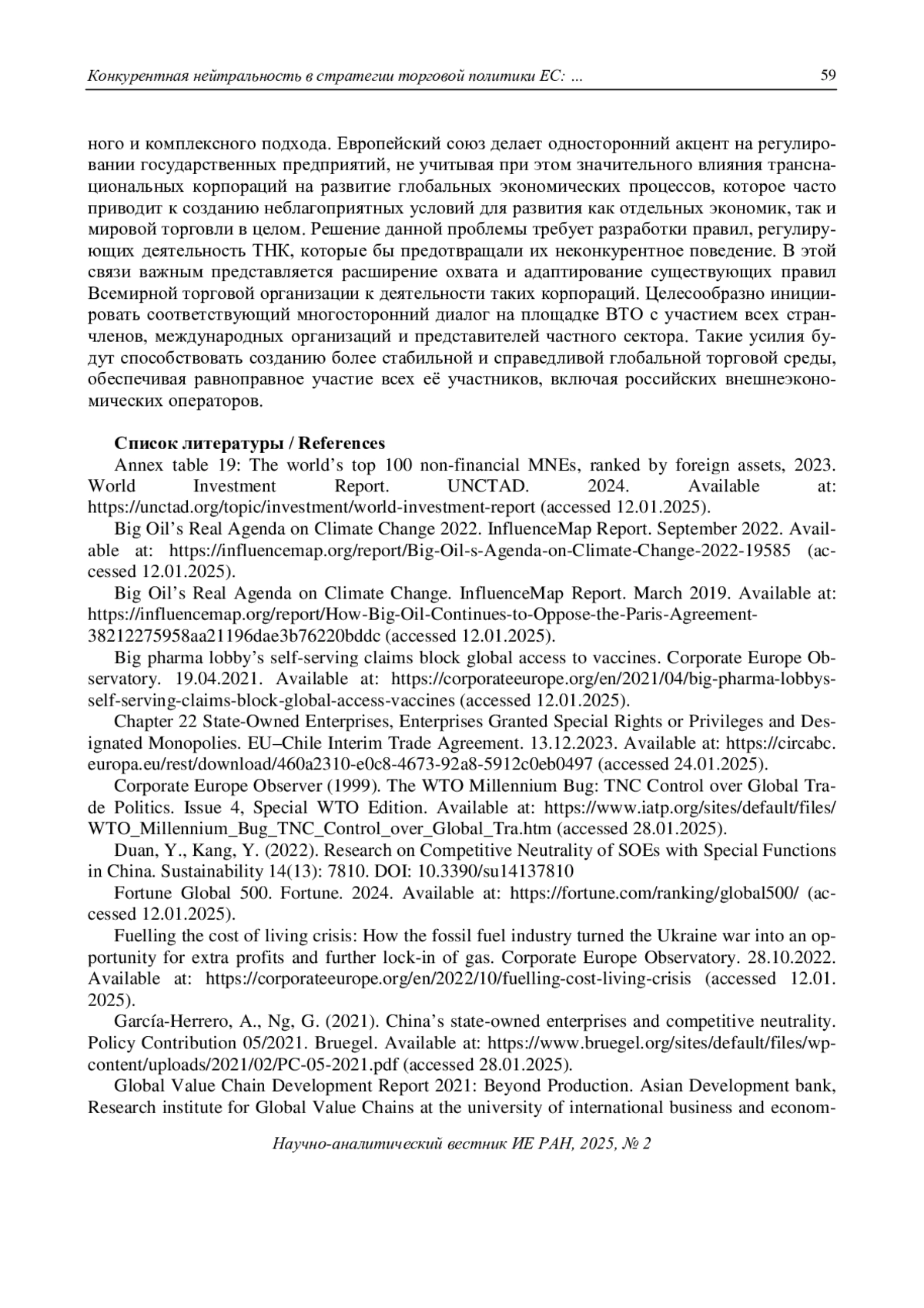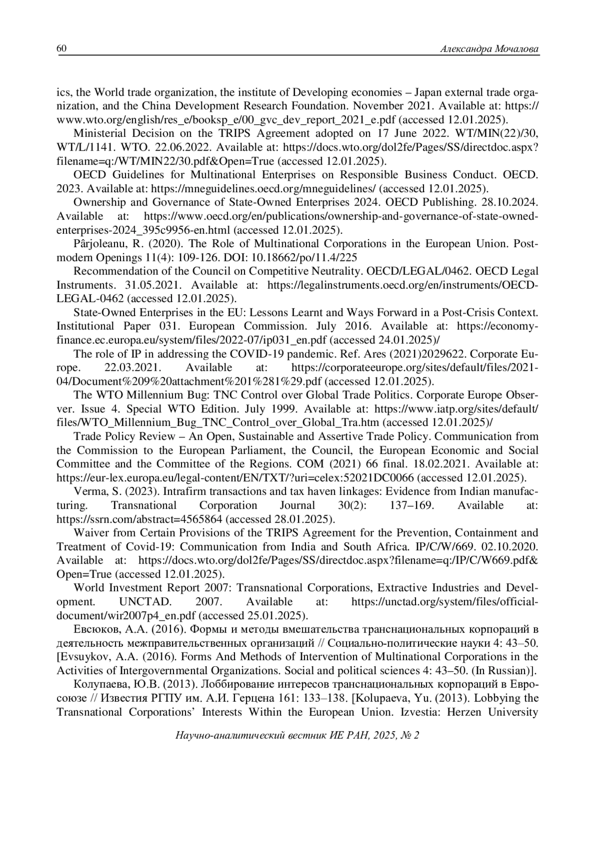 6. Corporate Europe Observer (1999). The WTO Millennium Bug: TNC Control over Global Tra-de Politics. Issue 4, Special WTO Edition. Available at: https://www.iatp.org/sites/default/files/ WTO_Millennium_Bug_TNC_Control_over_Global_Tra.htm (accessed 28.01.2025).