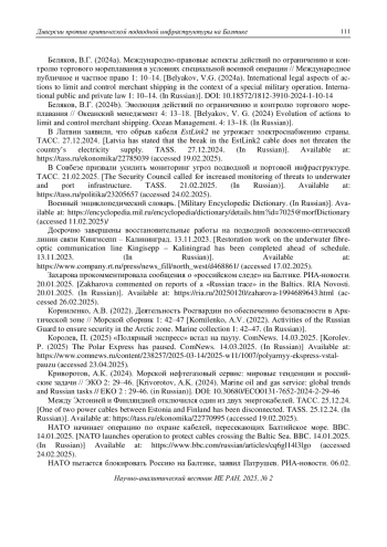 34. НАТО пытается блокировать Россию на Балтике, заявил Патрушев. РИА-новости. 06.02. 2025. [NATO is trying to block Russia in the Baltics, Patrushev said. RIA-novosti. 06.02.2025. (In Russian)]. Available at: https://ria.ru/20250206/nato-1997791589.html (accessed 26.02.2025).