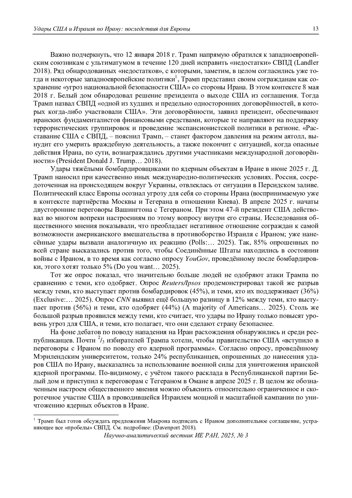13. Polls: Americans don’t support Trump’s war on Iran. Responsible Statecraft. 30.06.2025. Available at: https://responsiblestatecraft.org/iran-war-2672495957/(accessed 14.07.2025).