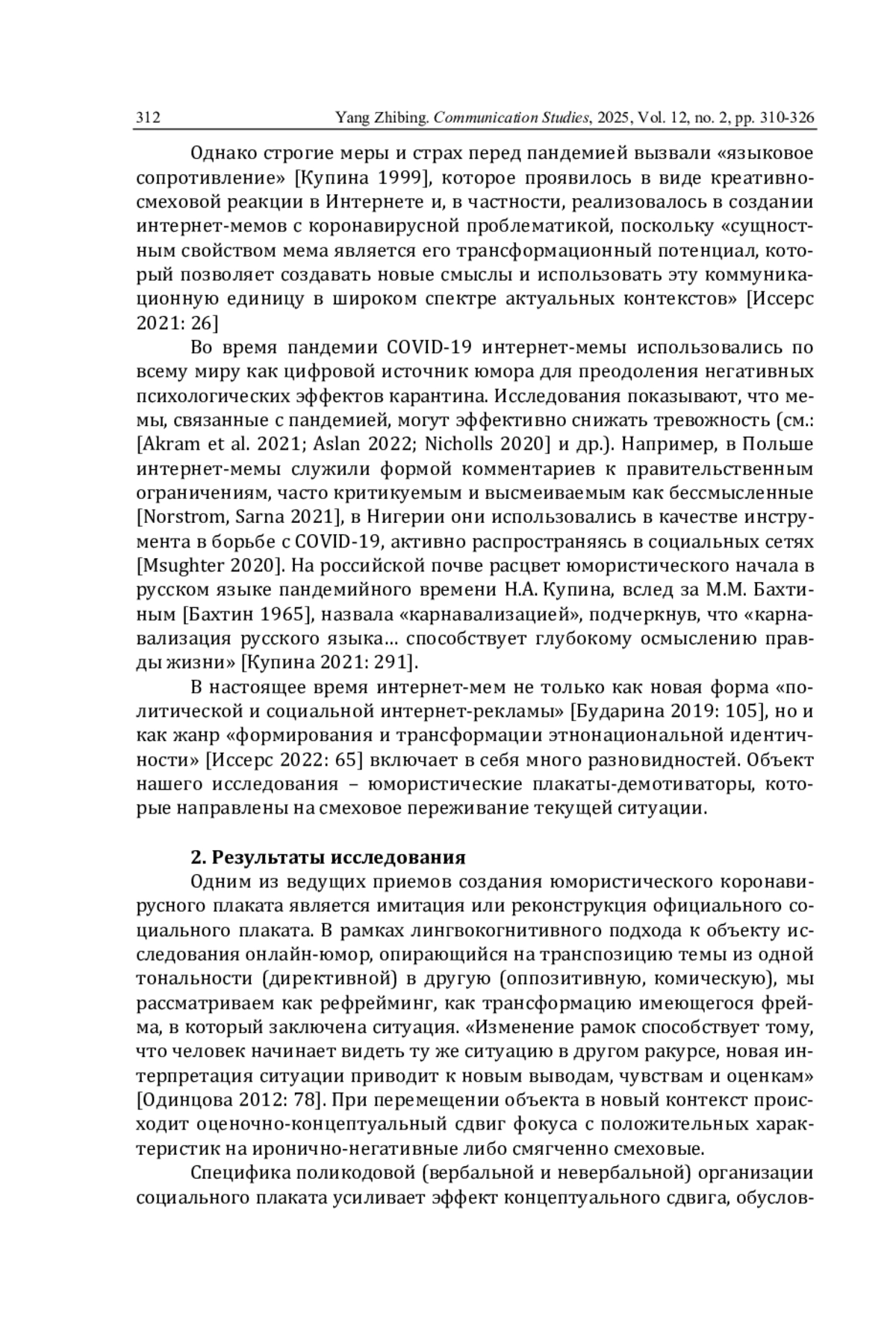 11. Купина Н.А. Карнавализация русского языка в эпоху пандемии коронавируса // Известия Уральского федерального университета. Серия 2. Гуманитарные науки. 2021. Т. 23. № 1. С. 280-292. DOI: 10.15826/izv2.2021.23.1.019 EDN: VIRGUM
