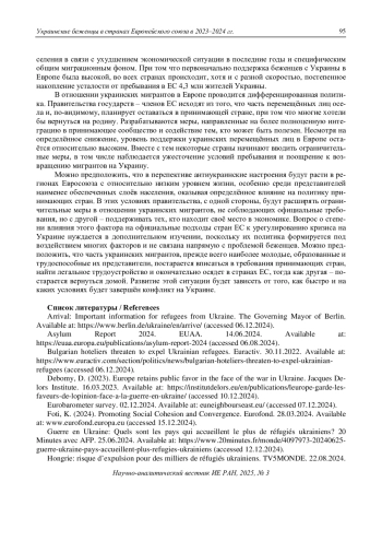 30. Хорольская, М.В. (2022). Политика Германии в отношении украинских беженцев // Современная Европа (7): 57-69. [Horol’skaya, M.V. (2022). Germany’s Policy towards Ukrainian Refugees. Contemporary Europe (7): 57-69. (In Russian)]. DOI: 10.31857/S0201708322070051 EDN: KVZBXQ