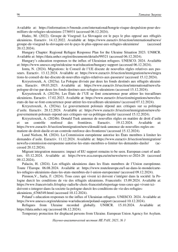 8. Hongrie: risque d’expulsion pour des milliers de réfugiés ukrainiens. TV5MONDE. 22.08.2024. Available at: https://information.tv5monde.com/international/hongrie-risque-dexpulsion-pour-des-milliers-de-refugies-ukrainiens-2736931 (accessed 06.12.2024).