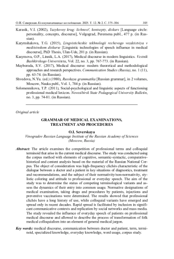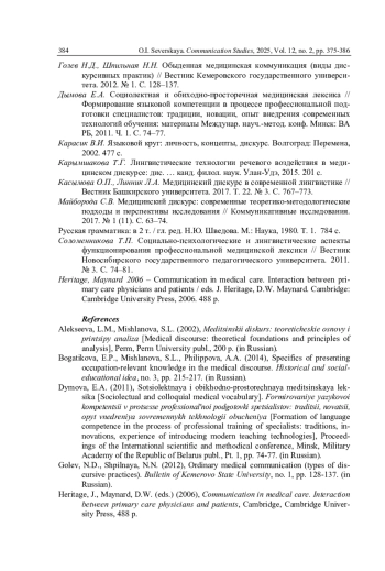 7. Касымова О.П., Линник Л.А. Медицинский дискурс в современной лингвистике // Вестник Башкирского университета. 2017. Т. 22. № 3. С. 767-773. EDN: YLVBWS
