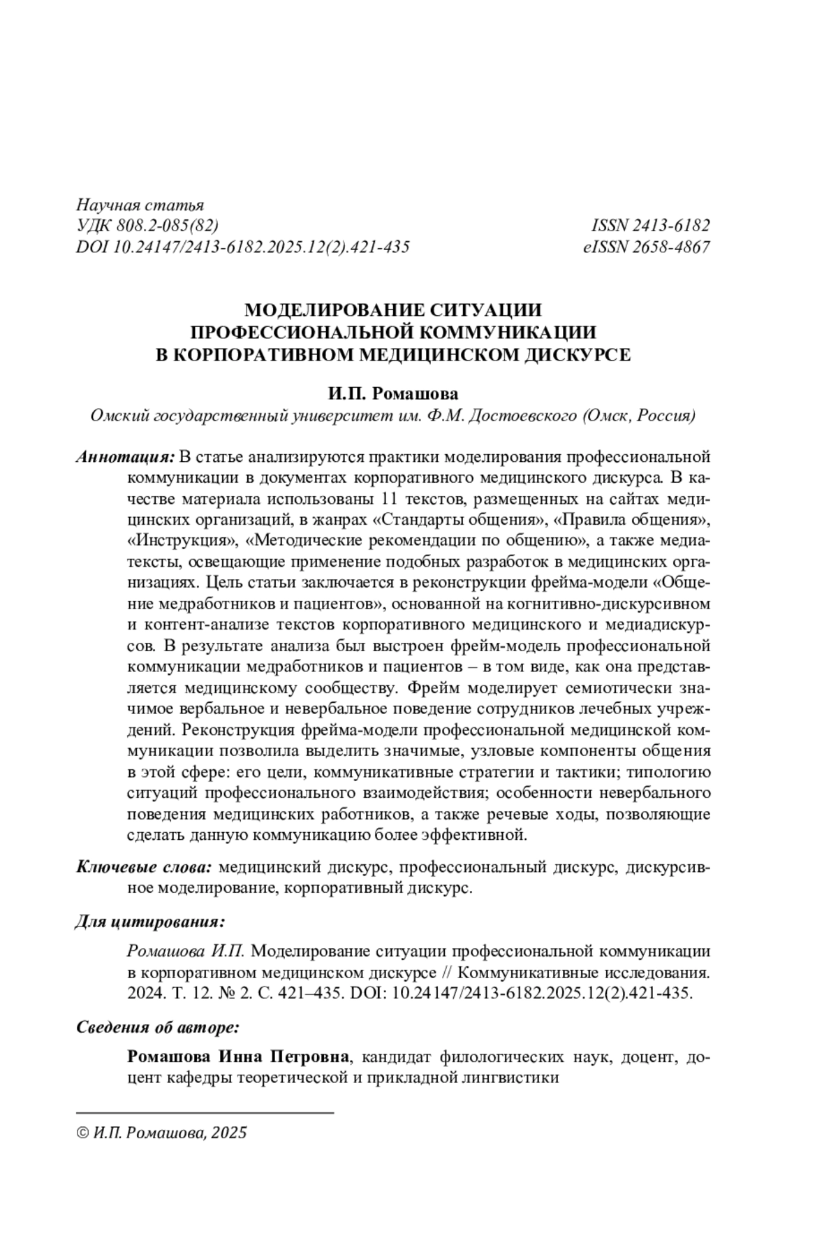 2. Ахнина К.В. Сетевой медицинский дискурс: языковые и коммуникативно-прагматические характеристики: автореф. дис. … канд. филол. наук. М., 2016. 24 с. EDN: ZQGCRD