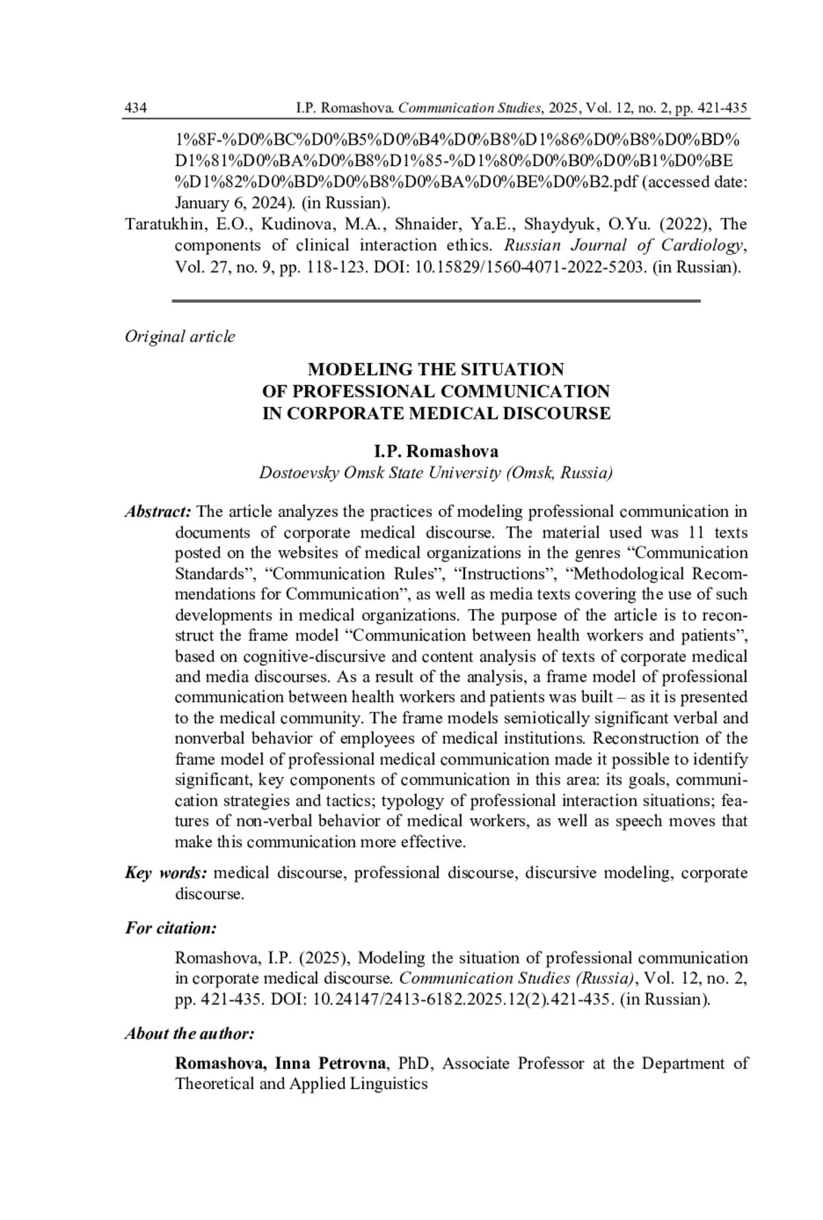 8. Карымшакова Т.Г. Лингвистические технологии речевого воздействия в медицинском дискурсе: автореф. дис. … канд. филол. наук. Улан-Удэ, 2016. 24 с. EDN: VTCOIP
