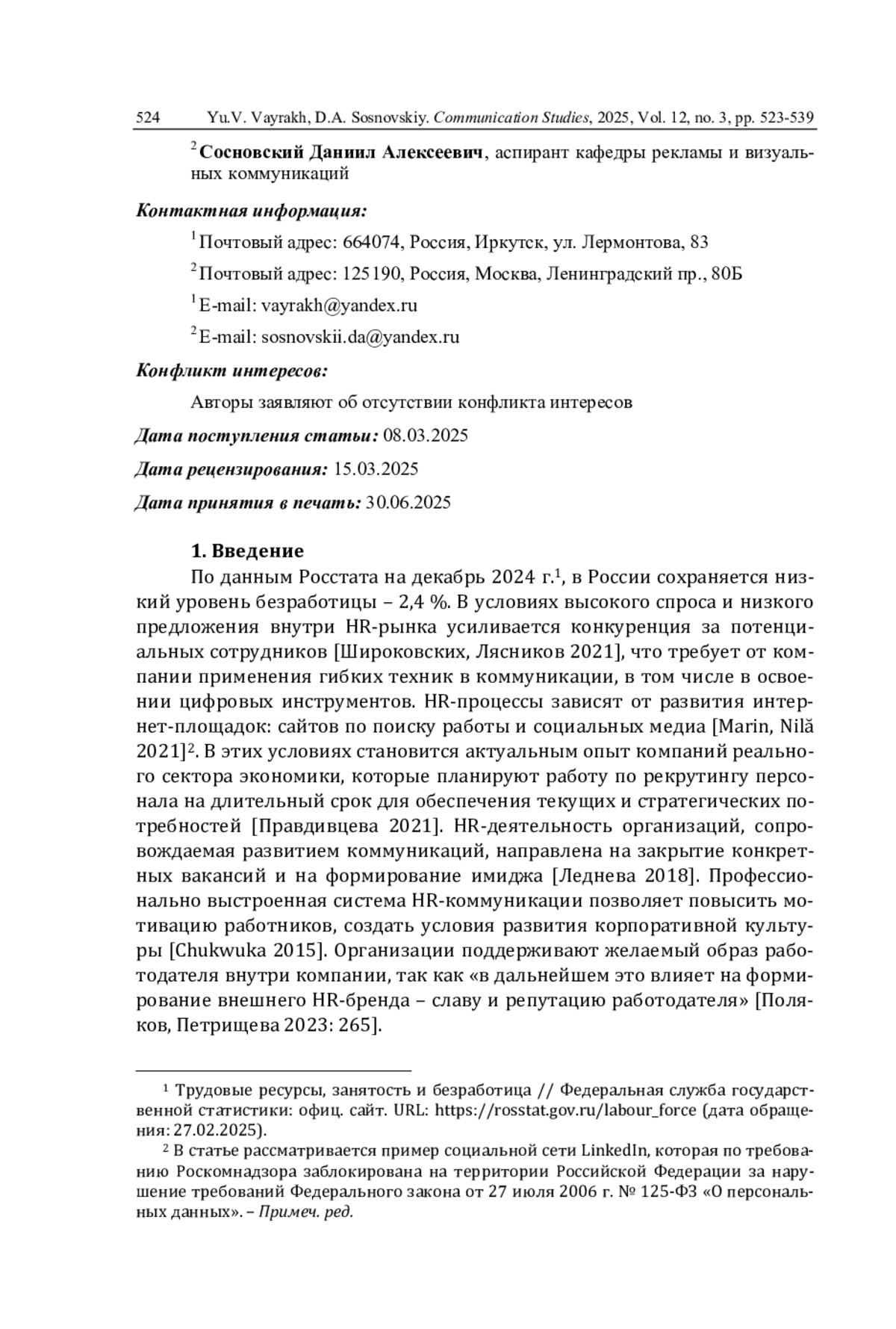 25. Marin G.D., Nilă C. Branding in social media. Using LinkedIn in personal brand communication: A study on communications/marketing and recruitment/human resources specialists perception // Social Sciences & Humanities Open. 2021. Vol. 4. Iss. 1. Art. 100174. DOI: 10.1016/j.ssaho.2021.100174 EDN: WGVLLA