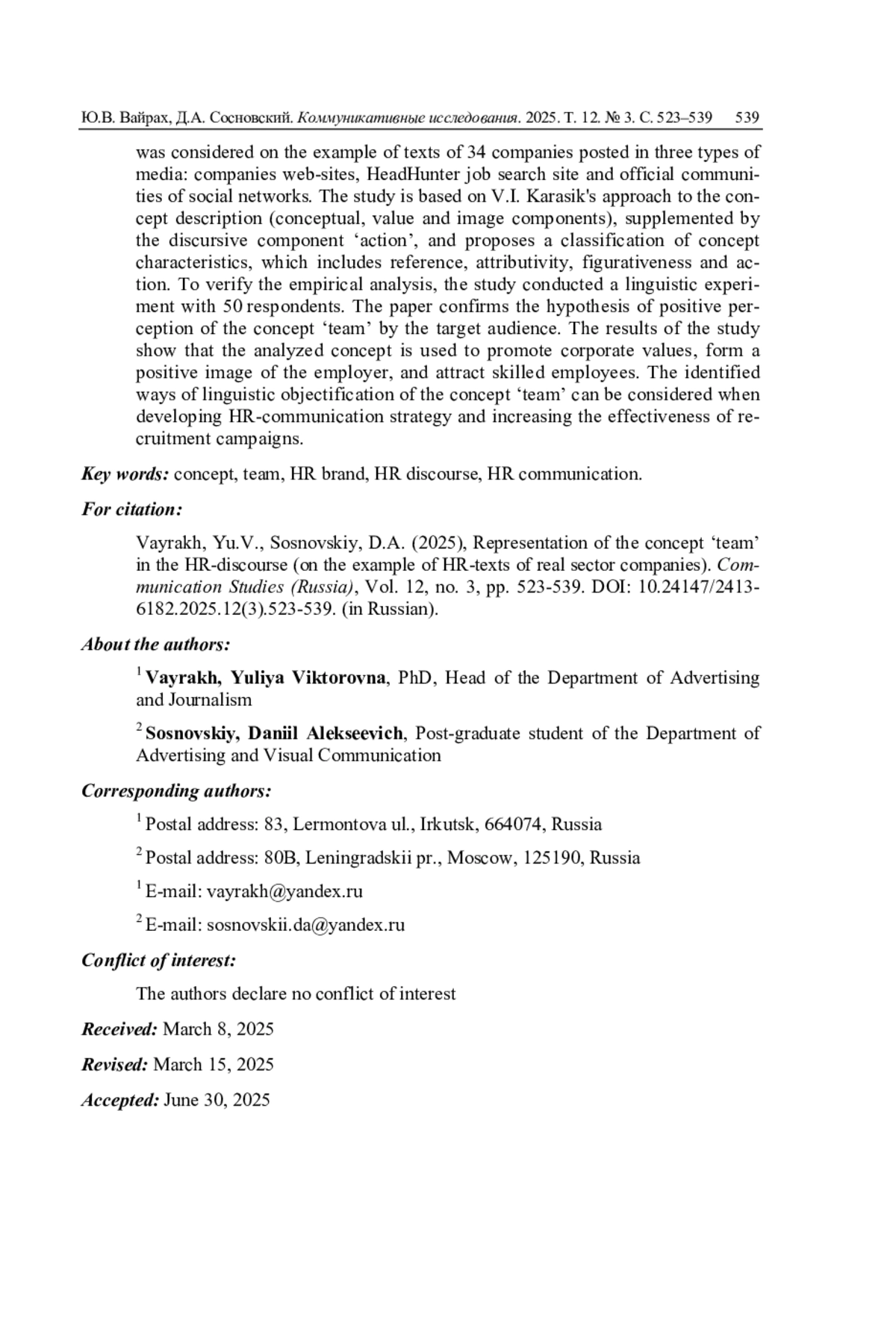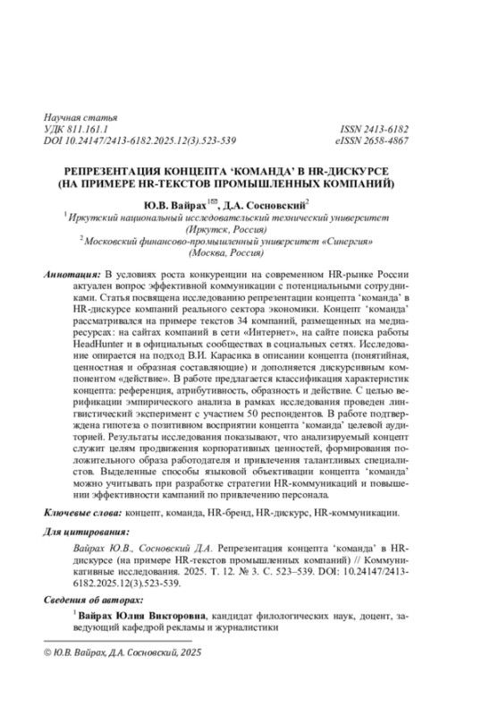 11. Леднева В.К. “Объявление о приеме на работу” как особый тип текста // Образование. Язык. Межкультурная коммуникация: сб. ст. по материалам Всерос. науч.-практ. конф. с междунар. участием. Пермь: Перм. гос. нац. исслед. ун-т, 2018. С. 74-81. EDN: YXPTTV
