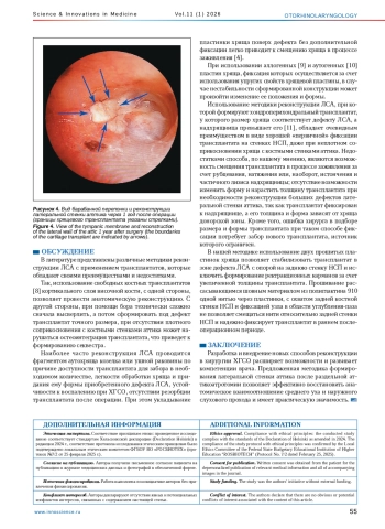 Заключение. Разработка и внедрение новых способов реконструкции в хирургии хронического гнойного среднего отита расширяет возможности и развивает компетенции врача. Предложенная методика формирования латеральной стенки аттика после раздельной аттикоатротомии позволяет эффективно восстановить анатомическое взаимоотношение среднего уха и наружного слухового прохода и имеет практическую значимость