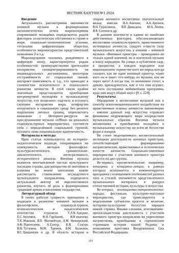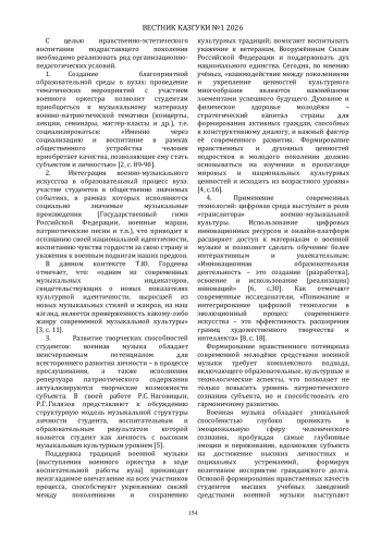 Цель представленного исследования - раскрыть значимость и определить организационно-педагогические условия интеграции военной музыки в воспитательное пространство высших учебных заведений: