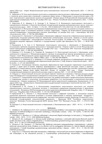 4. Гильмеева Р. Х., Разяпов И. Г. Чат-боты как эффективный инструмент педагогического взаимодействия в гибридной (цифровой) образовательной среде // Вестник Казанского государственного университета культуры и искусств. - 2025. - № 2. - С. 184-190. EDN: PWWPBP