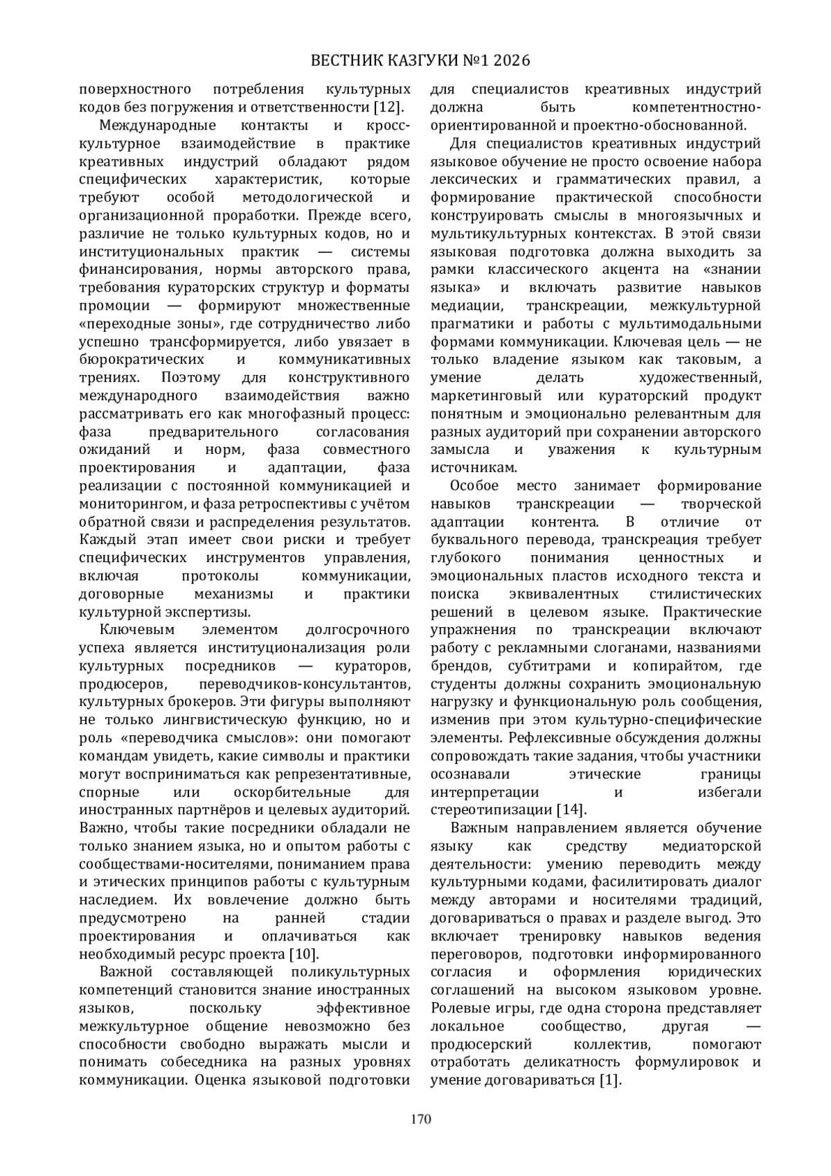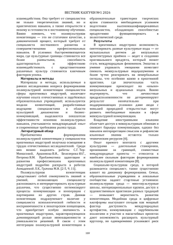 В современном мире, характеризующемся активным развитием международных контактов, поликультурная компетенция становится важным аспектом профессиональной подготовки специалистов в различных сферах, включая креативные индустрии.