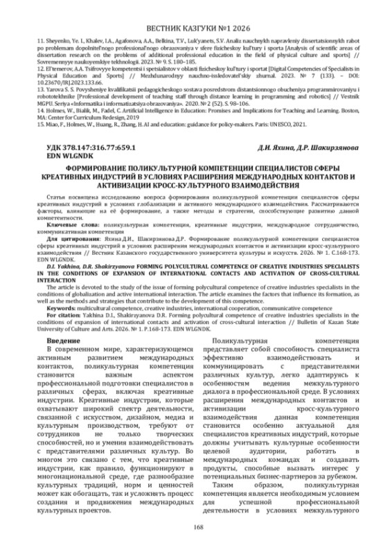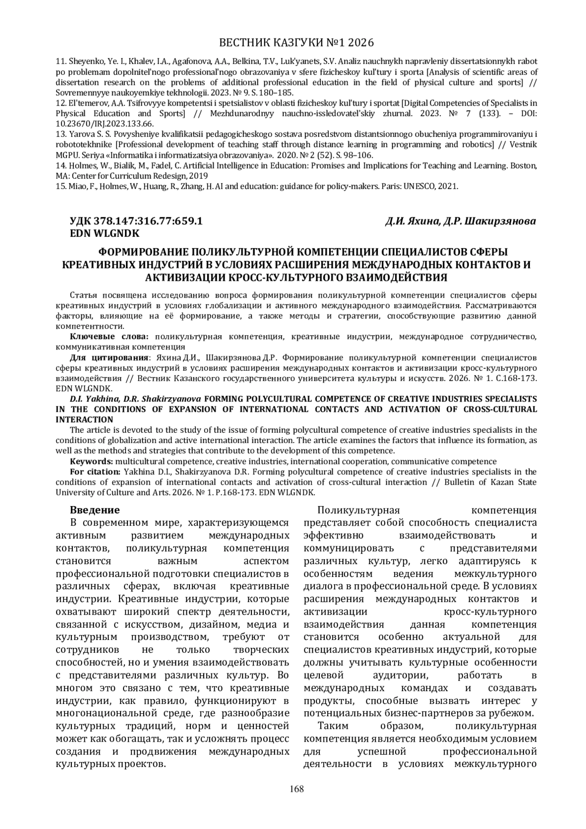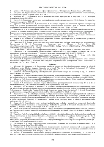 13. Хазова С. А. Поликультурная компетентность педагога / С. А. Хазова, Ф. Р. Хатит. 2015. URL: https://doicode.ru/doifile/regdoi/2015-2020/9785990691254.pdf (дата обращения: 22.12.2025). EDN: UKMFIT