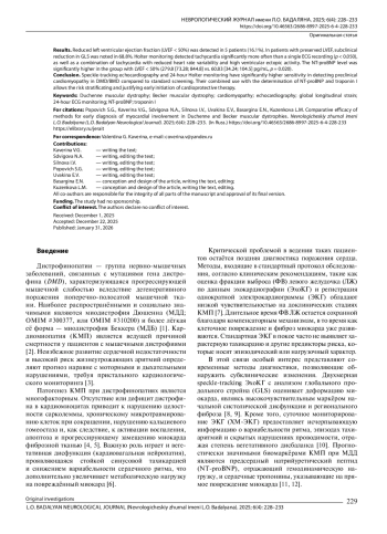 4. Kamdar F., Garry D.J. Dystrophin-deficient cardiomyopathy. J. Am. Coll. Cardiol. 2016; 67(21): 2533-46. DOI: 10.1016/j.jacc.2016.02.081