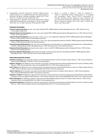 5. Spurney C.F. Cardiomyopathy of Duchenne muscular dystrophy: current understanding and future directions. Muscle Nerve. 2011; 44(1): 8-19. DOI: 10.1002/mus.22097