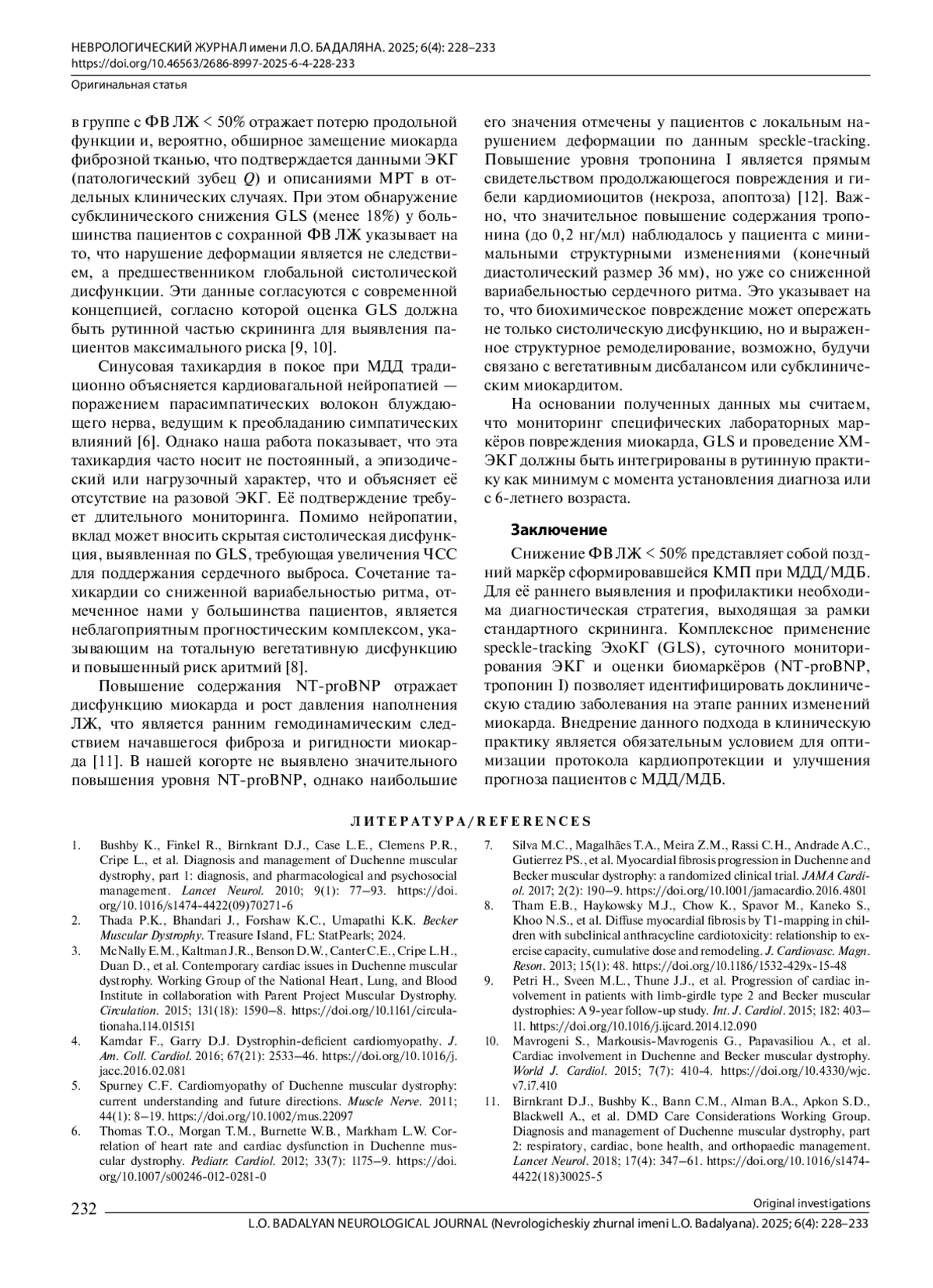9. Petri H., Sveen M.L., Thune J.J., et al. Progression of cardiac involvement in patients with limb-girdle type 2 and Becker muscular dystrophies: A 9-year follow-up study. Int. J. Cardiol. 2015; 182: 403-11. DOI: 10.1016/j.ijcard.2014.12.090