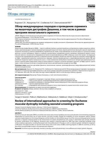 24. Parad R.B., Sheldon Y., Bhattacharjee A. Implementation of hospital-based supplemental Duchenne muscular dystrophy newborn screening (sDMDNBS): a pathway to broadening adoption. Int. J. Neonatal. Screen. 2021; 7(4): 77. DOI: 10.3390/ijns7040077