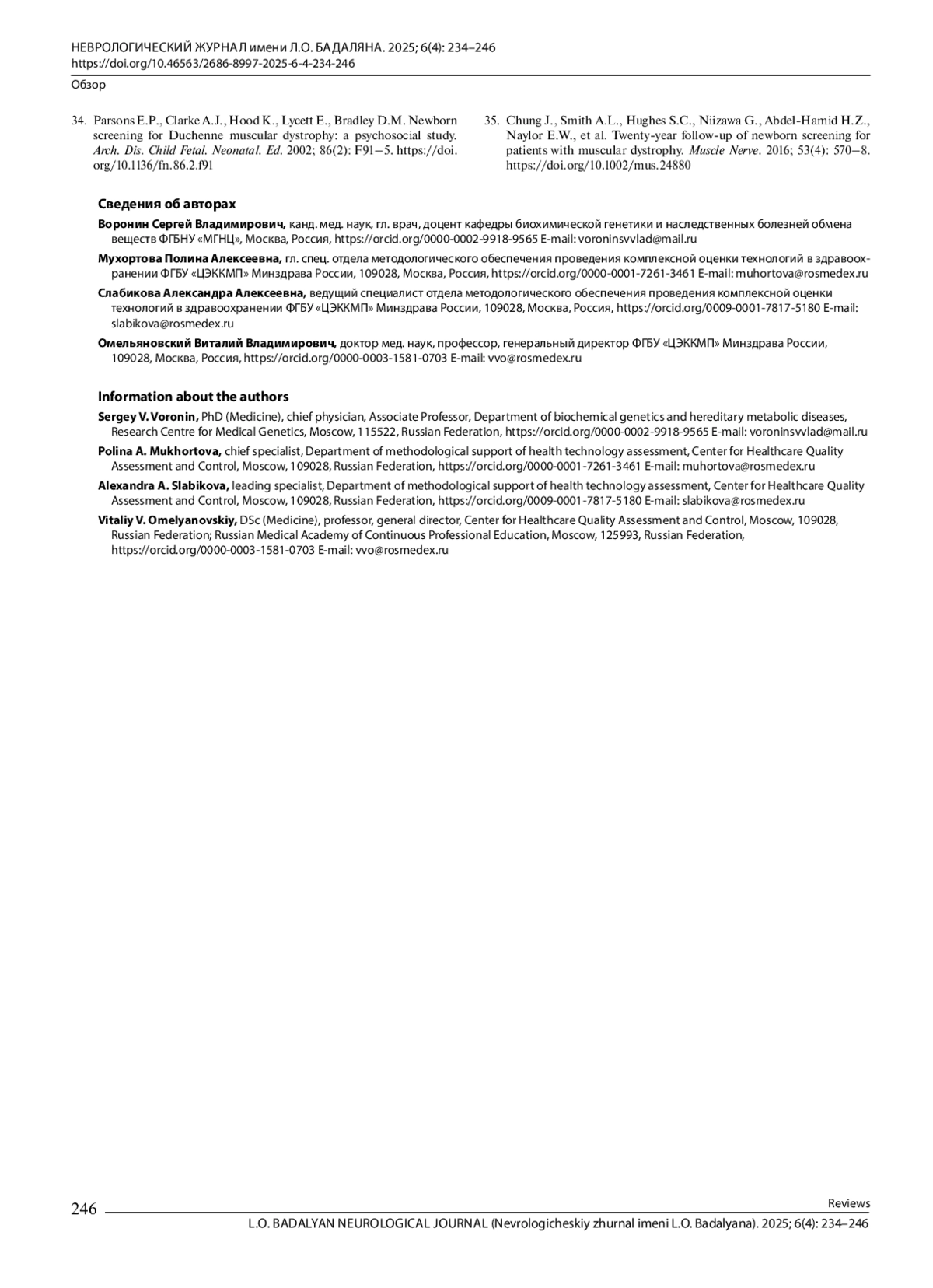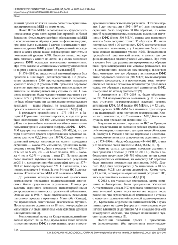 25. Ellis J.A., Vroom E., Muntoni F. 195th ENMC international workshop: Newborn screening for Duchenne muscular dystrophy 14-16th December, 2012, Naarden, The Netherlands. Neuromuscul. Disord. 2013; 23(8): 682-9. DOI: 10.1016/j.nmd.2013.05.008