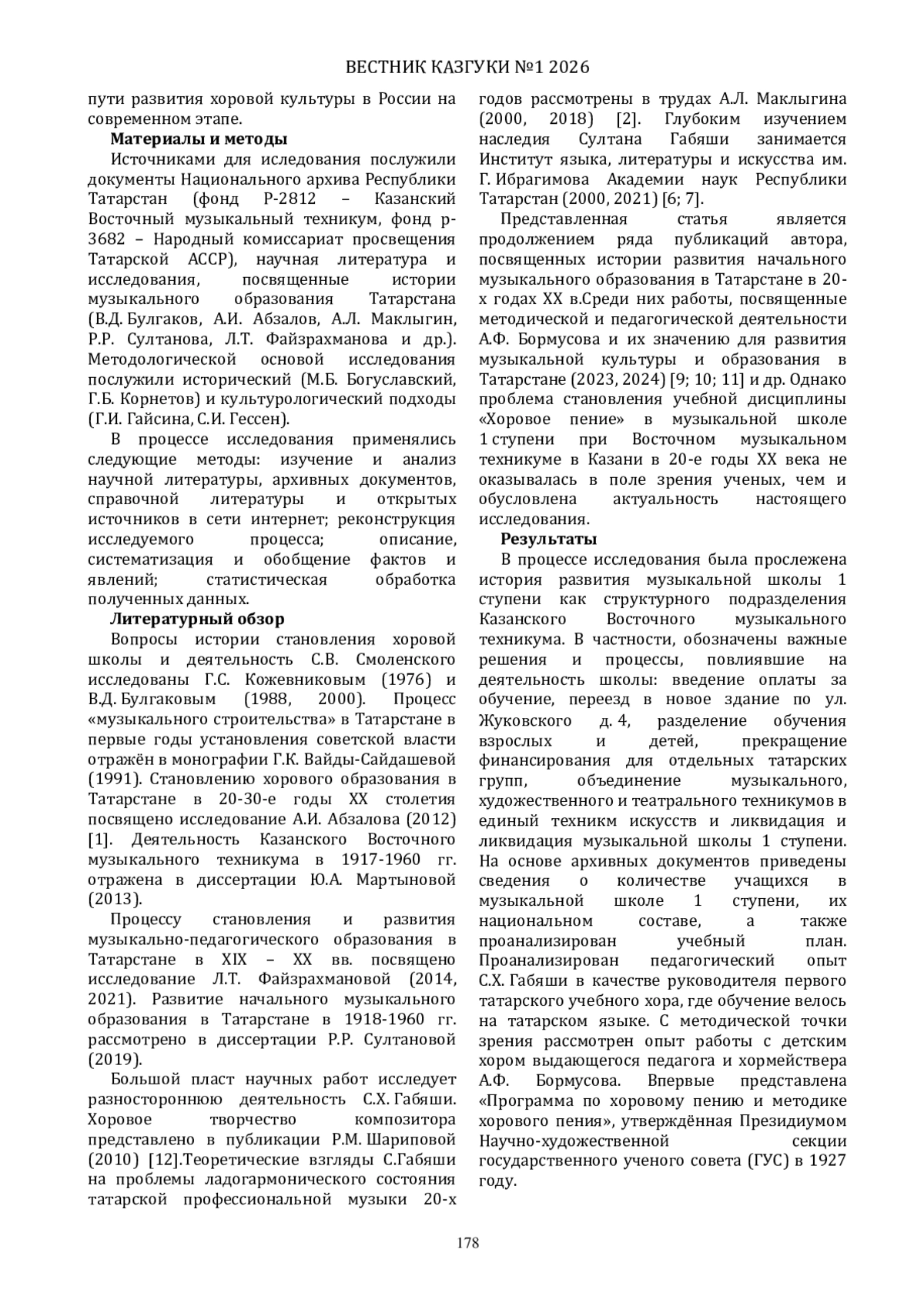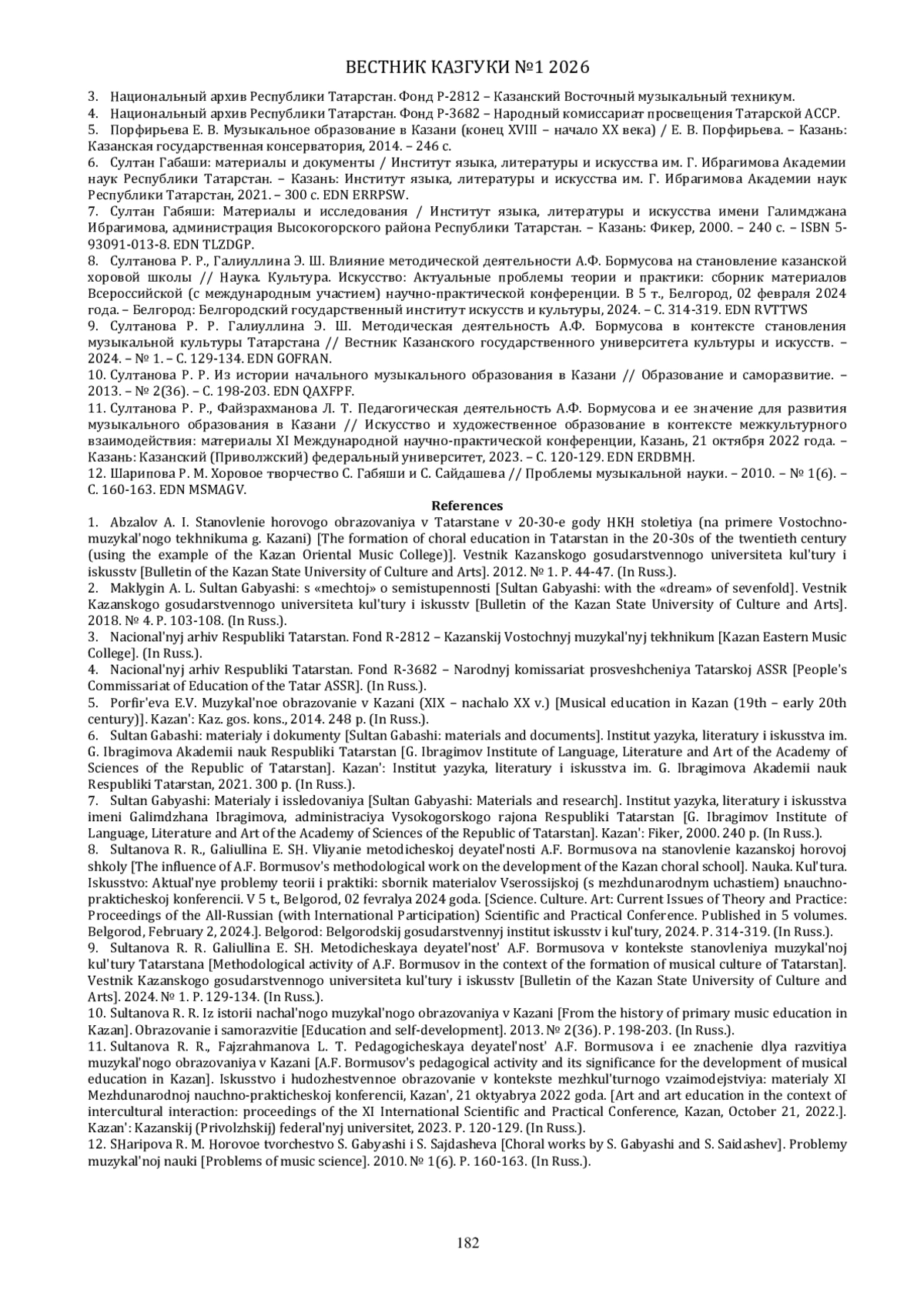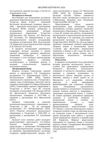 9. Султанова Р. Р. Галиуллина Э. Ш. Методическая деятельность А.Ф. Бормусова в контексте становления музыкальной культуры Татарстана // Вестник Казанского государственного университета культуры и искусств. - 2024. - № 1. - С. 129-134. EDN: GOFRAN
