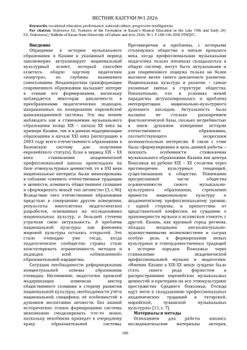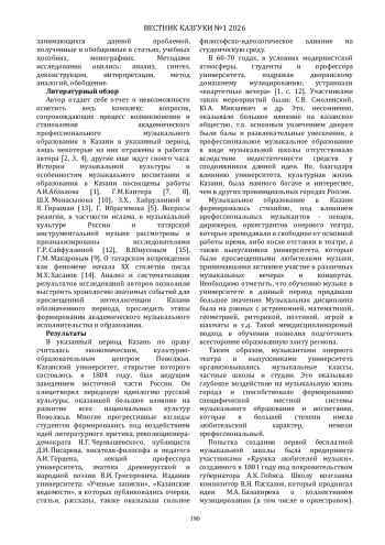 Обращение к истории музыкального образования в Казани в указанный период закономерно актуализирует национальный культурный аспект, который способен осветить общую картину педагогики «изнутри», из глубины нынешнего самосознания.